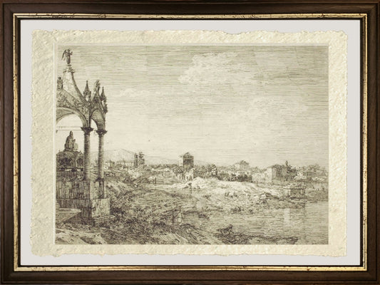 Tre colonne e una statua sulla costa del mare - Giovanni Antonio Canal detto Canaletto