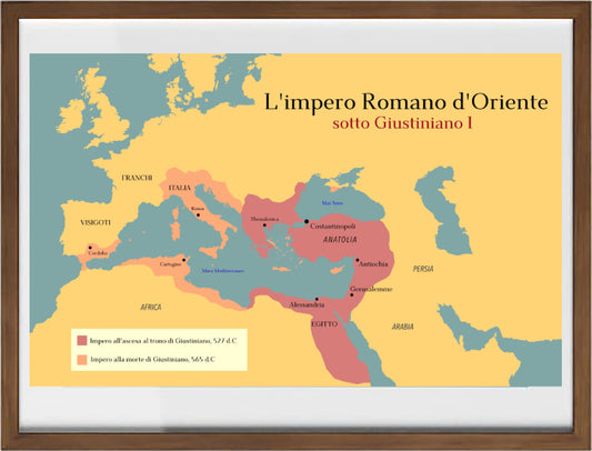 Mappa dell'impero Romano d'Oriente sotto Giustiniano I