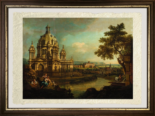 A Capriccio with a domed church and buildings in Pirna - Bernardo Bellotto