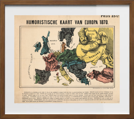 Dutch edition of a rare German caricature map of Europe during the Franco-Prussian War by Arnold Neumann