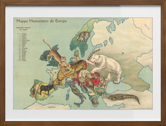 Zoomorphic caricature map of Europe by António Soares