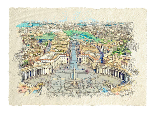 Basilica di San Pietro. Acquarello con vista dall'alto