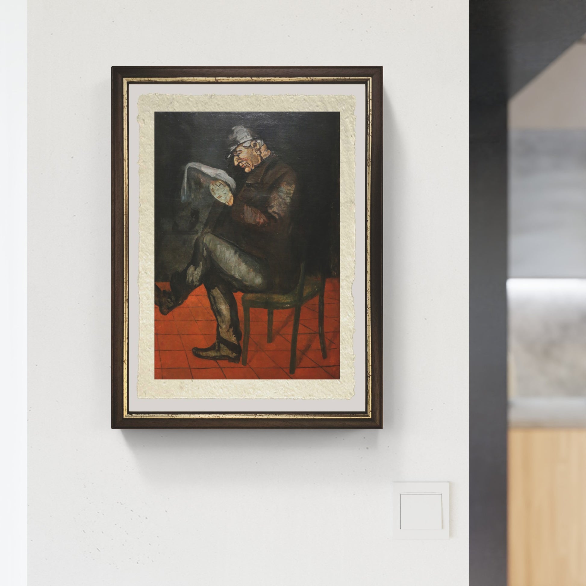 "The Painter's Father" is an oil painting by the famous French post-impressionist painter Paul Cézanne, executed around 1865 and kept at the National Gallery in London. The work portrays the artist's father, Louis-Auguste Cézanne, sitting in a wooden armchair with an open book on his lap. The figure of the father, who was around 60 years old at the time, is represented with great attention to detail, such as the folds of his dark suit and the wrinkles on his face.