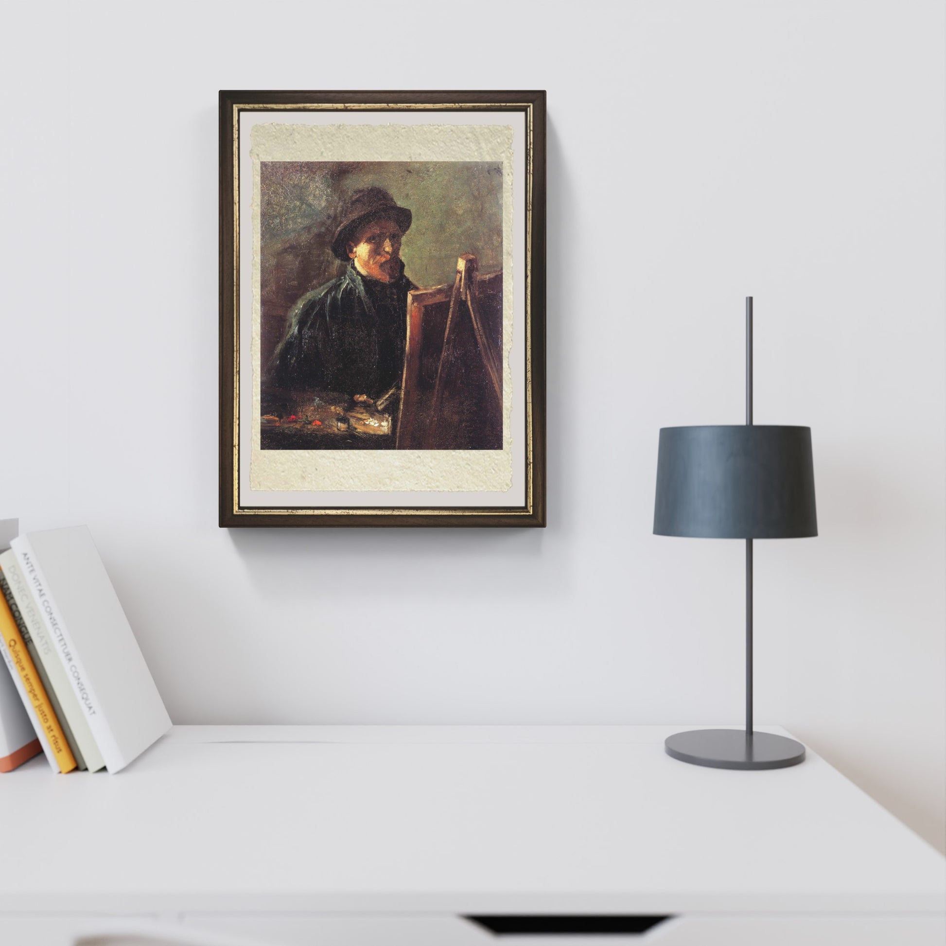 Self-portrait at the easel with a dark felt hat, Van Gogh. Reproduction