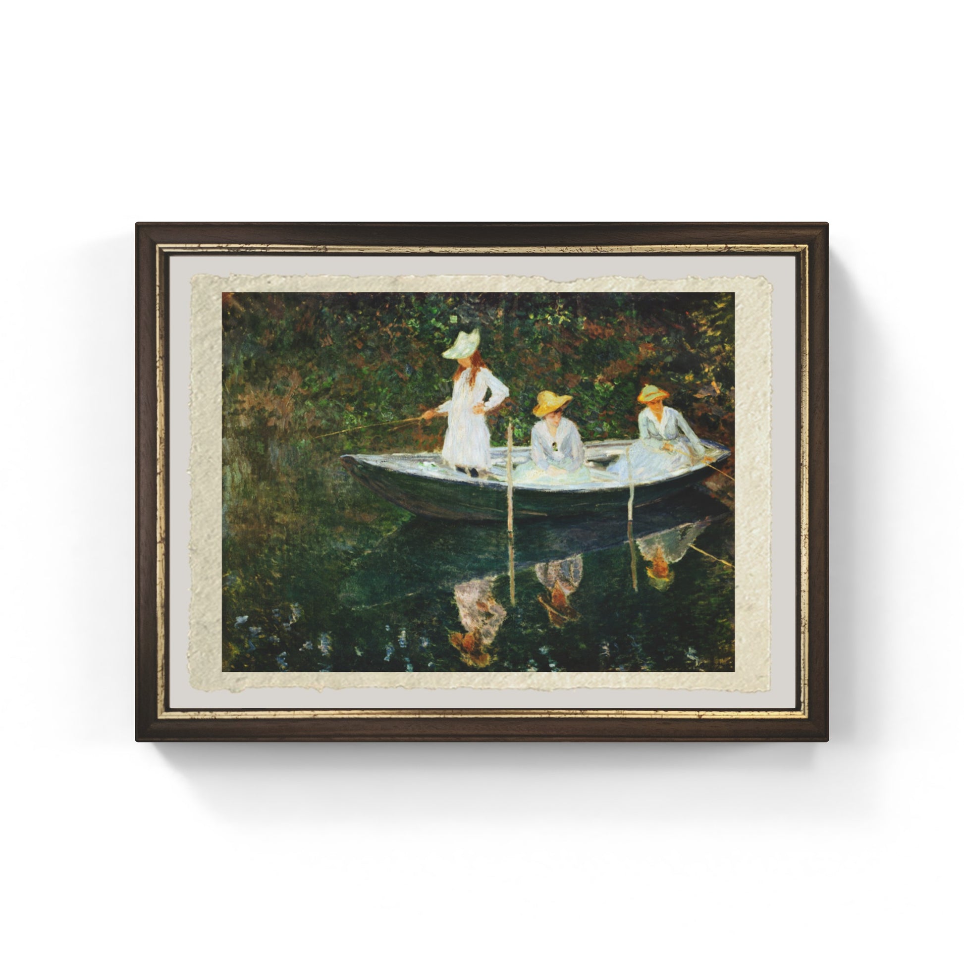 The painting "Boat at Giverny" is a work by Claude Monet, one of the most influential artists of the French Impressionist movement. The work is set within the period in which Monet settled in Giverny, a small village in Normandy, where he bought a property in 1890. It was here that the artist created the famous water gardens, which became an inexhaustible source of inspiration for much of his subsequent artistic production.
