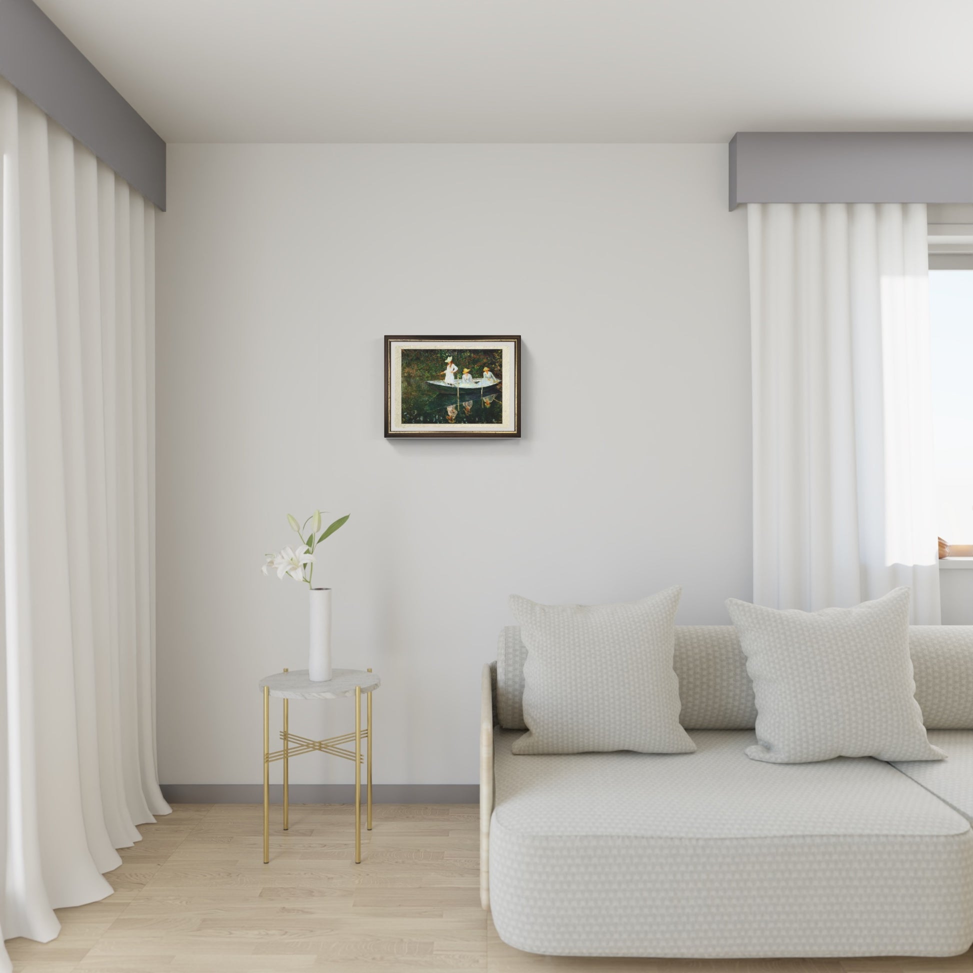 "The Boat at Giverny" is an investigation of the interactions between sunlight and the surface of the water, with reflections breaking down and recomposing forms. The presence of the boat, often a small pleasure craft or a garden maintenance boat, is an element that adds a focal point within the composition, while remaining subordinate to Monet's primary interest in color and atmosphere.