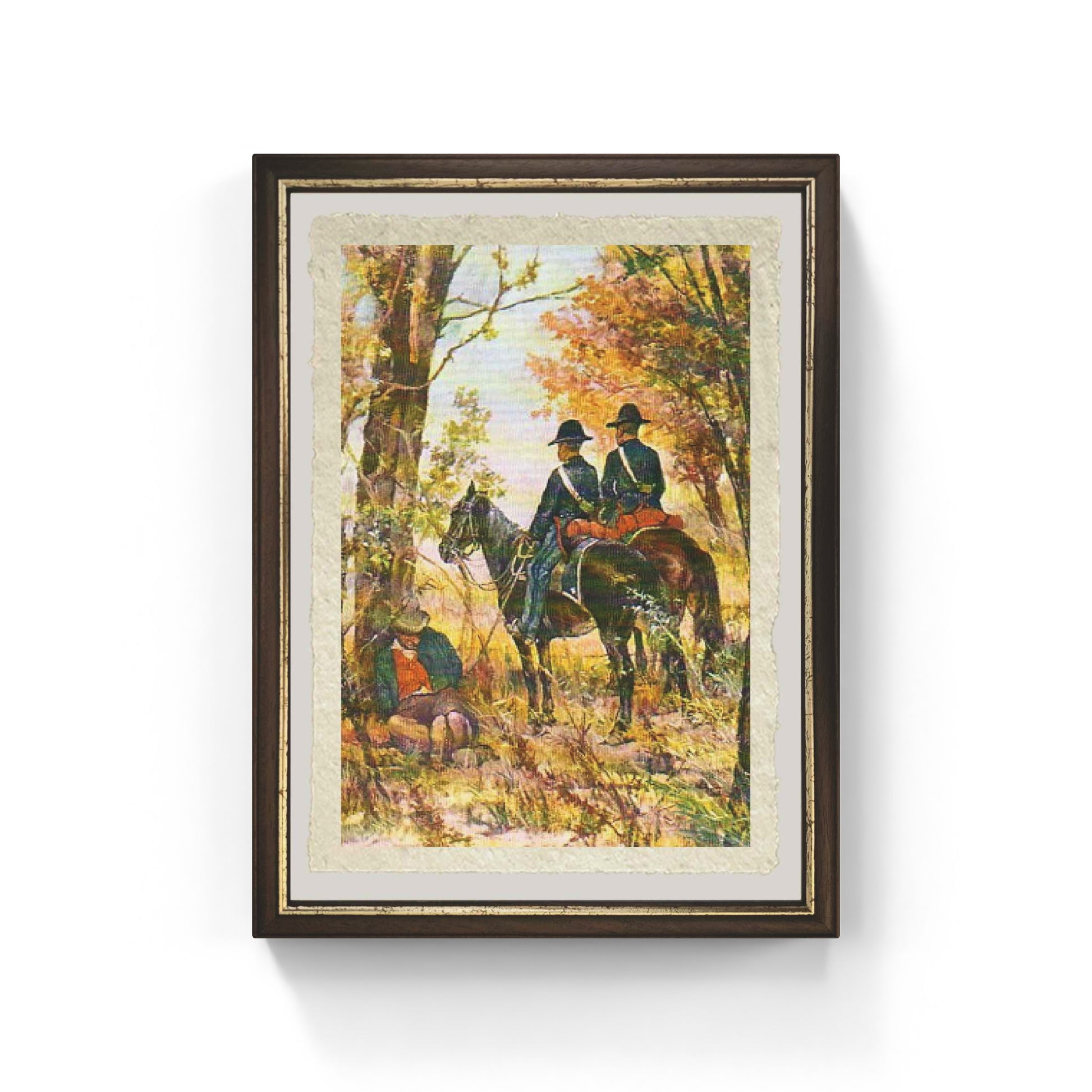 Giovanni Fattori tackles the theme of brigandage with a raw and unretouched realism, typical of his mature phase. The painting depicts a man immobilized and watched over by mounted Carabinieri, a scene unfolding in a desolate and barren Maremma, where the landscape seems to partake in the psychological tension of the moment. The composition is dominated by a low horizon line that emphasizes the vastness of the space and the inevitability of capture, while the color "patches" define volumes with an almost dramatic synthesis. Through the skillful use of light and chromatic contrasts, the artist transforms a news event into a universal reflection on defeat and social control, stripping the event of any heroism to restore its historical and human truth.