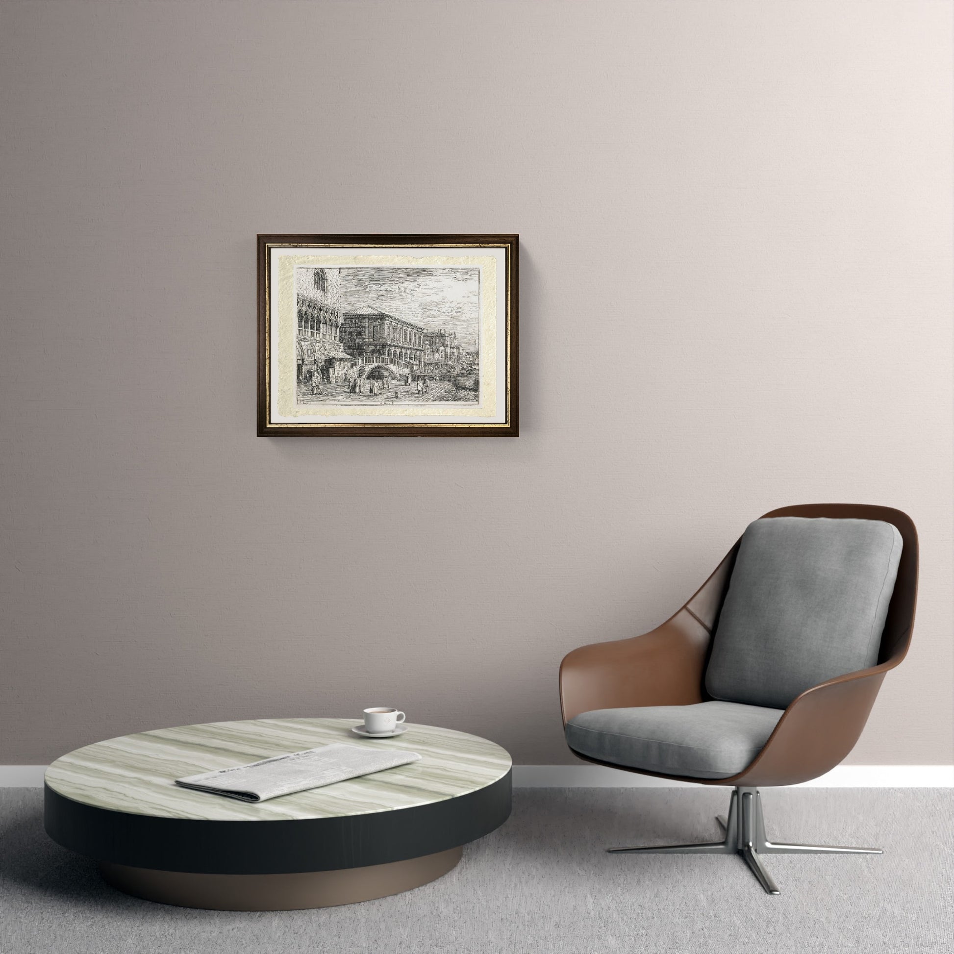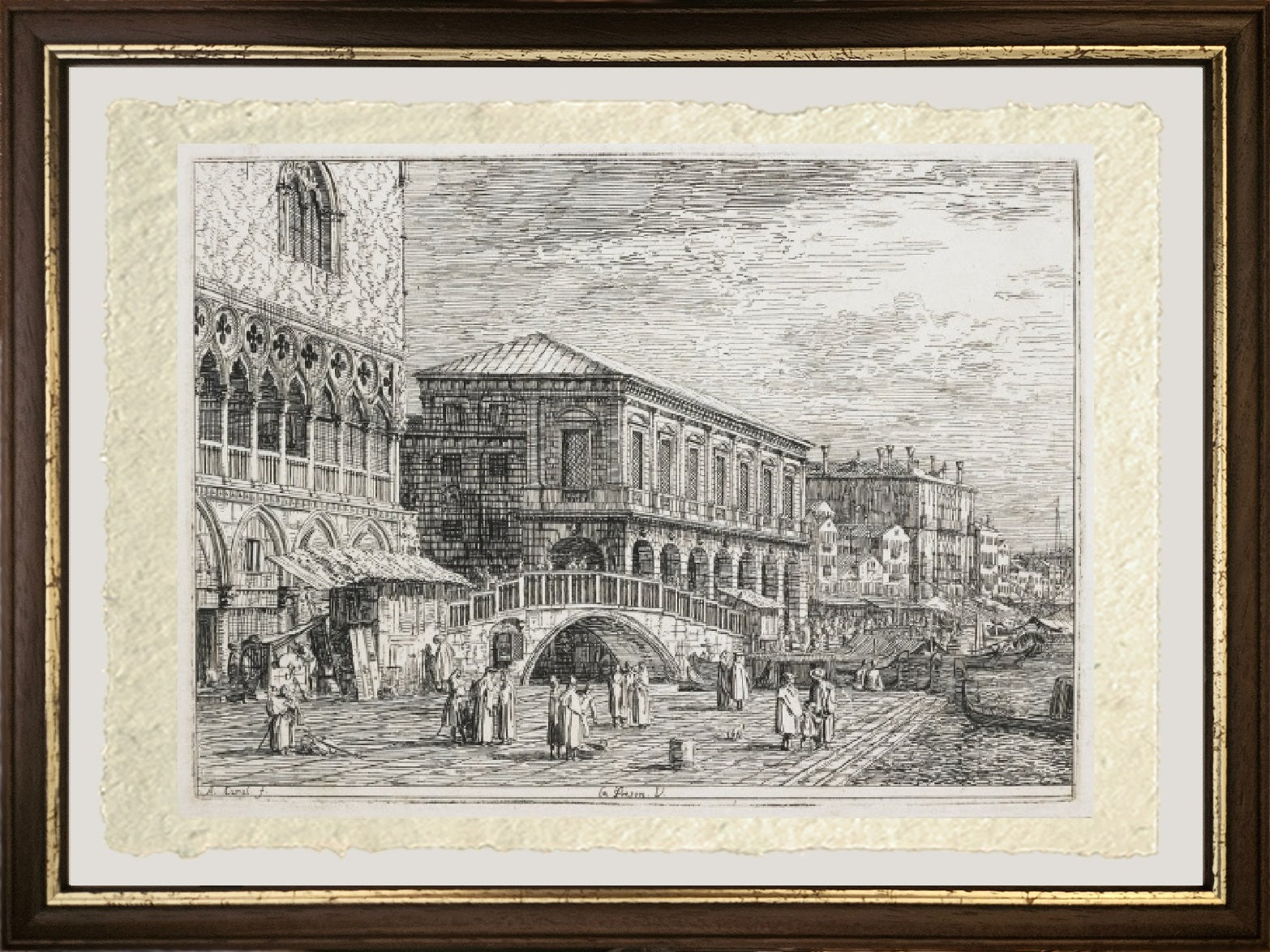 The painting, an oil on canvas, is dated 1740. There are many other variations of this work by Canaletto. The engraving is exhibited at the Minneapolis Institute of Arts, MN, USA.