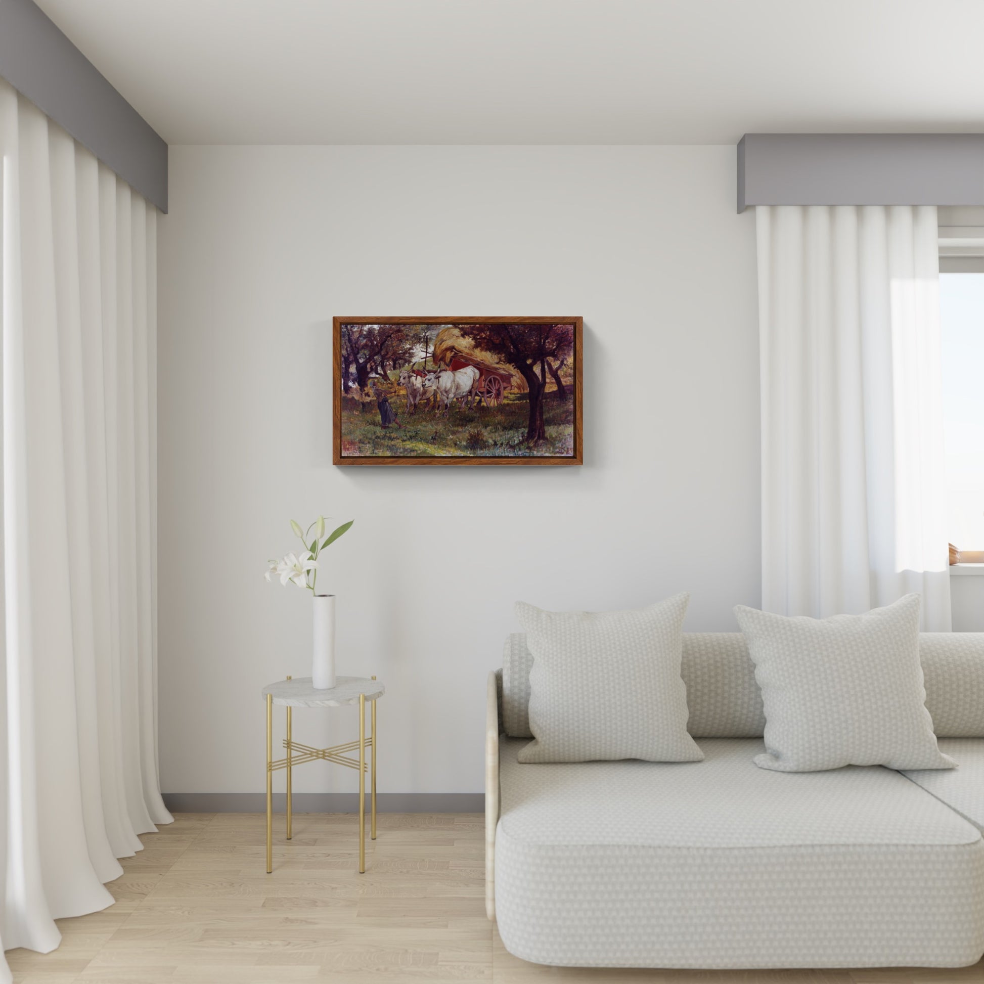 During this particular period, the artist was facing personal difficulties, and his painting sometimes reflected a certain melancholy, while maintaining his characteristic attention towards light vibrations. The painting is part of the broader context of his series of views of Vétheuil, through which he explored the transformations of the landscape under the influence of light.