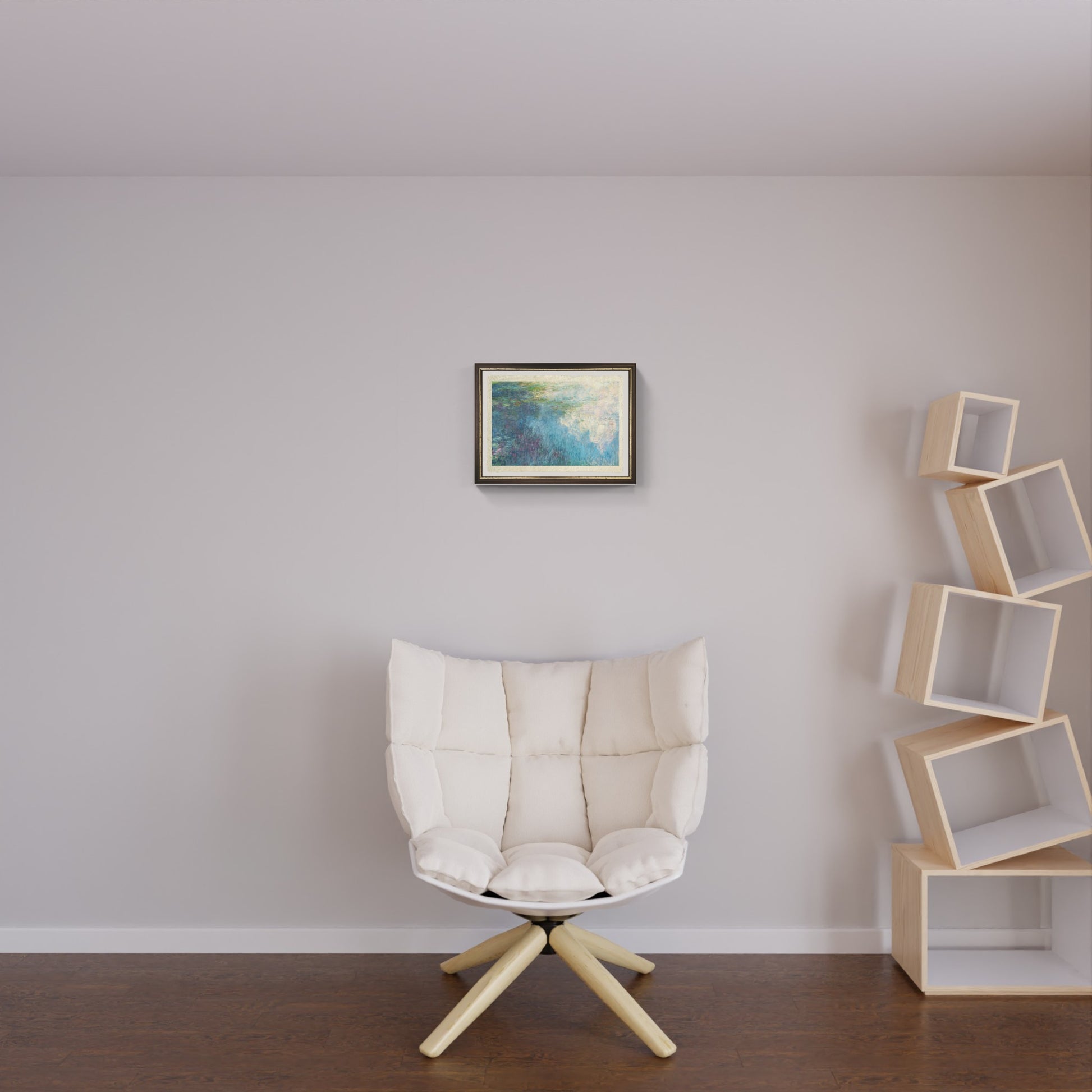 In this artwork, the focus shifts particularly to the reflections of the sky and cloud formations on the water of the pond. The composition is almost devoid of a horizon, inviting the viewer to immerse themselves completely in this ethereal vision.