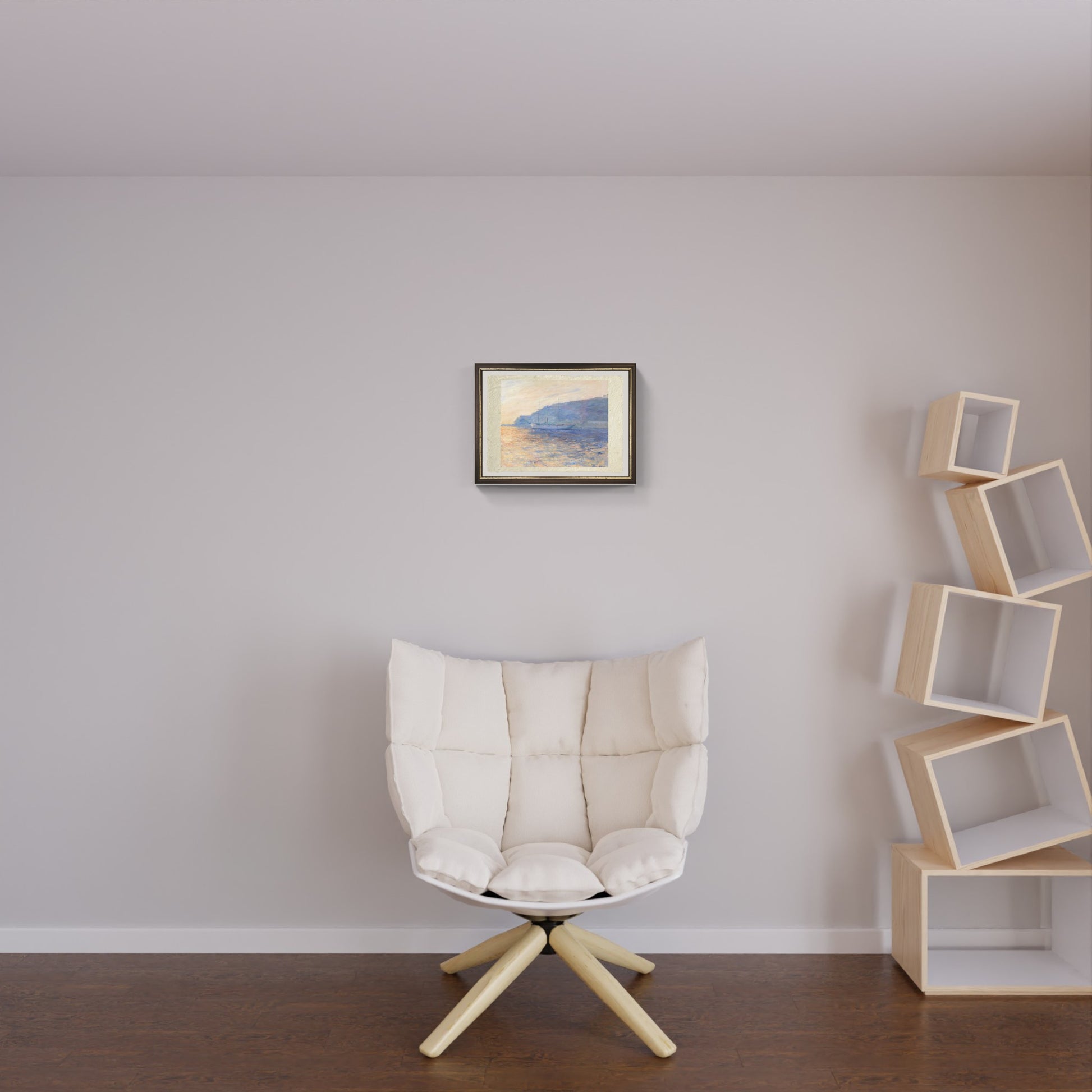 Quest'opera impressionista trasmette la bellezza naturale della costa mediterranea, offrendo uno sguardo suggestivo sull’armonia tra acqua e luce.