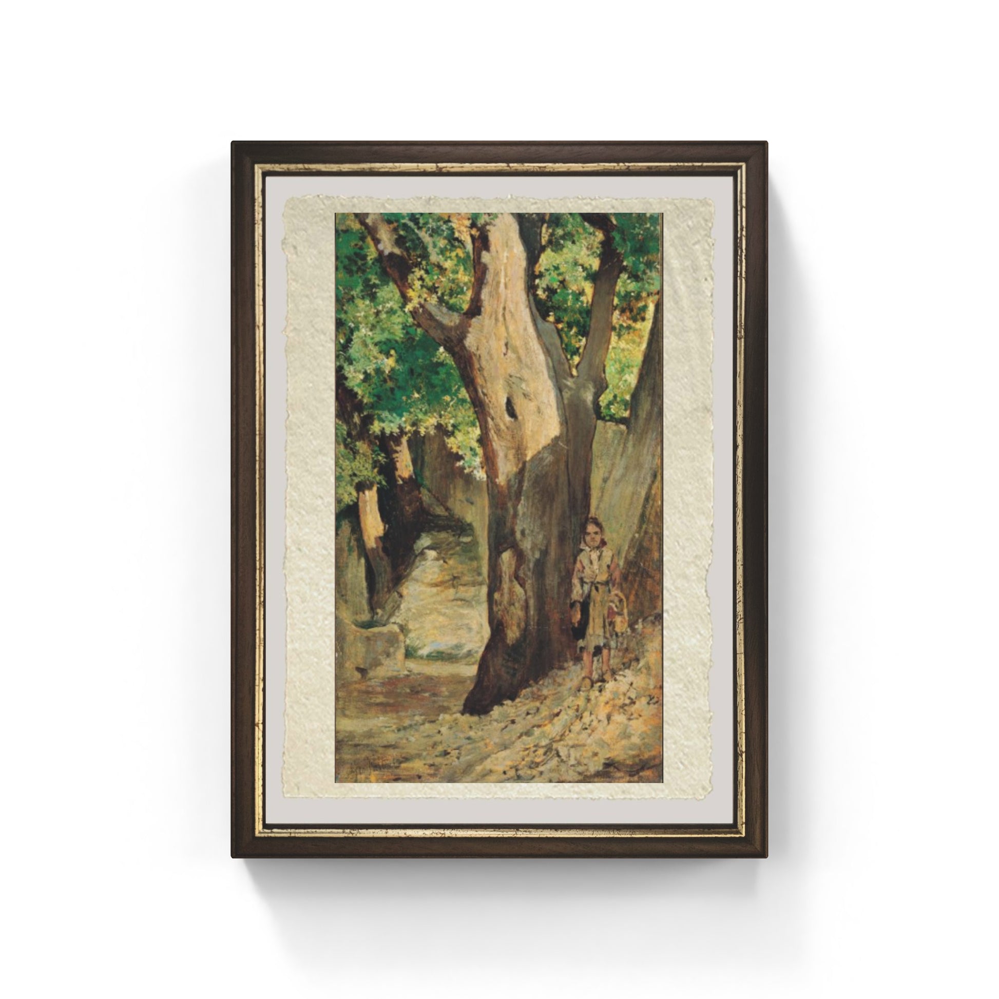 Bambina in un bosco di Giovanni Fattori su pregiata carta Amalfi