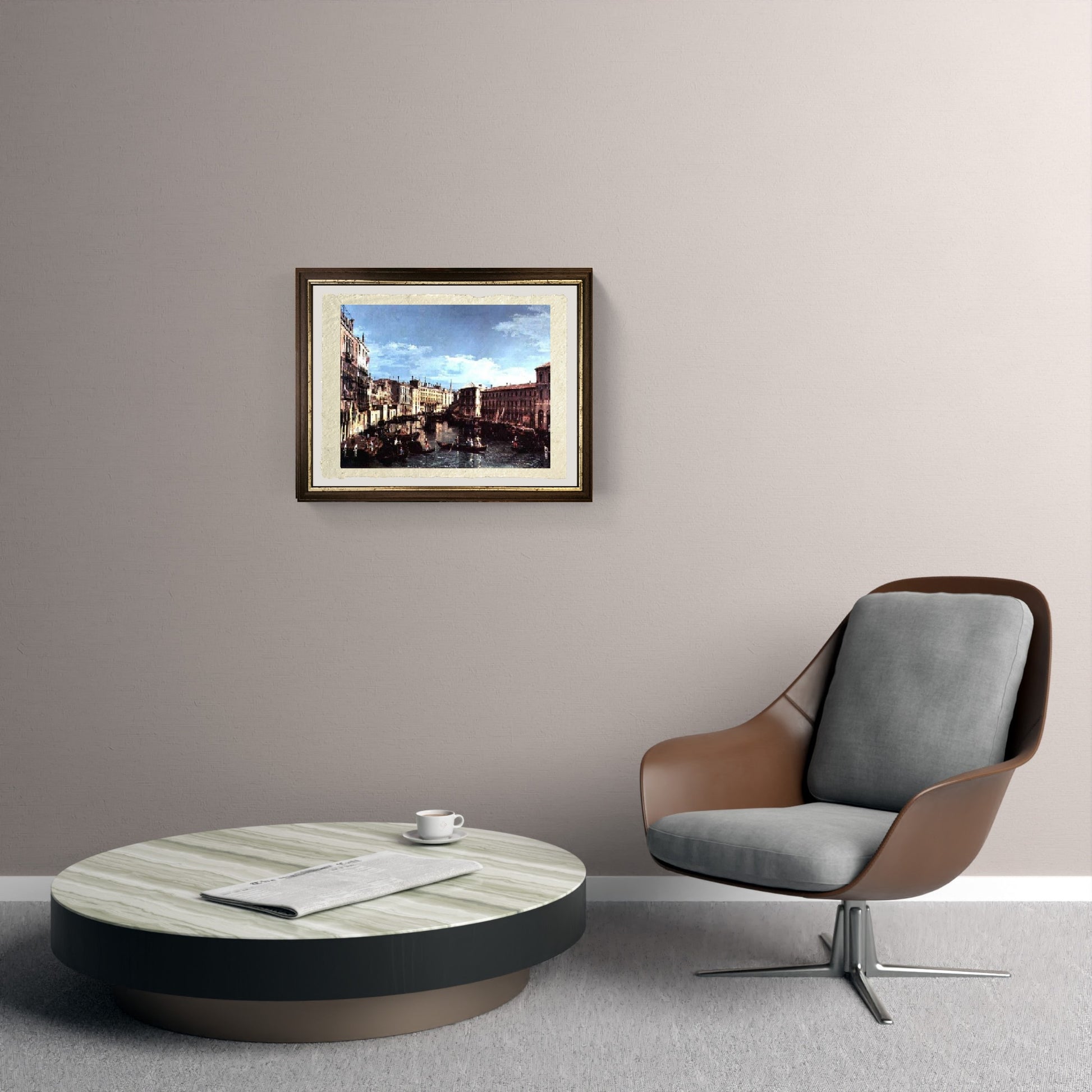 Meravigliosa e chiara veduta di Venezia con evidenza del Canal Grande, realizzata da Bernardo Bellotto. Il Canal Grande unisce tutta la città ed è trafficato di imbarcazioni di vario tipo, che lo solcano ogni giorno, senza sosta. Ai lati del canale, disposti affiancati, troviamo gli splendidi palazzi veneziani che si specchiano sulle acque del canale.