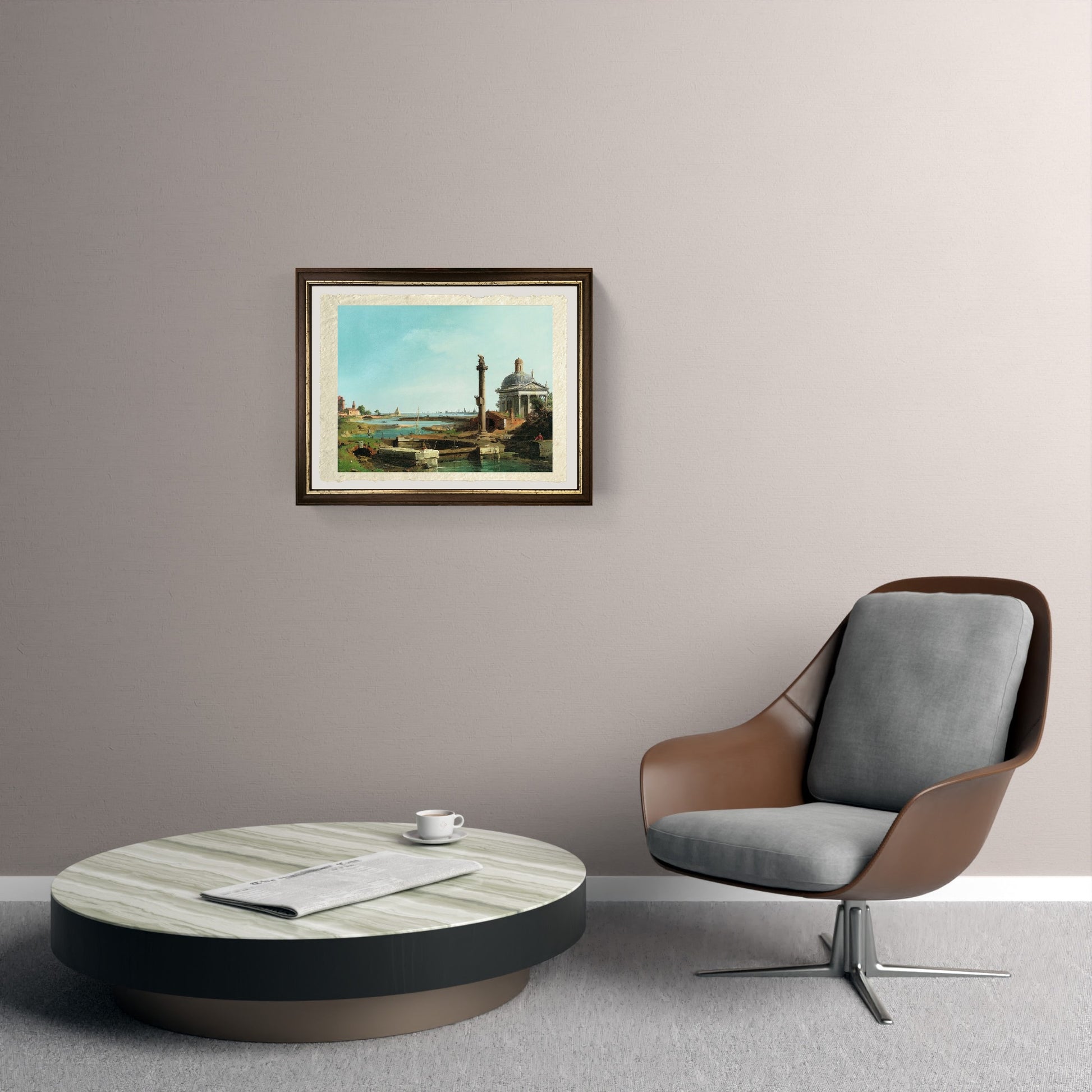 Originale veduta settecentesca di una chiusa, una colonna ed una chiesa, realizzata da Giovanni Antonio Canal detto il Canaletto. In primo troviamo la colonna, la quale è posta all'inizio della chiusa, forse rimanente da un'antica costruzione. Più sulla destra troviamo una bella chiesetta, in stile classico, con cupola. Tra i due monumenti spunta una casa di contadini, che ospita gli abitanti della chiusa. Più sullo sfondo è raffigurata la laguna che in lontananza si confonde con il cielo chiaro all'orizzonte.