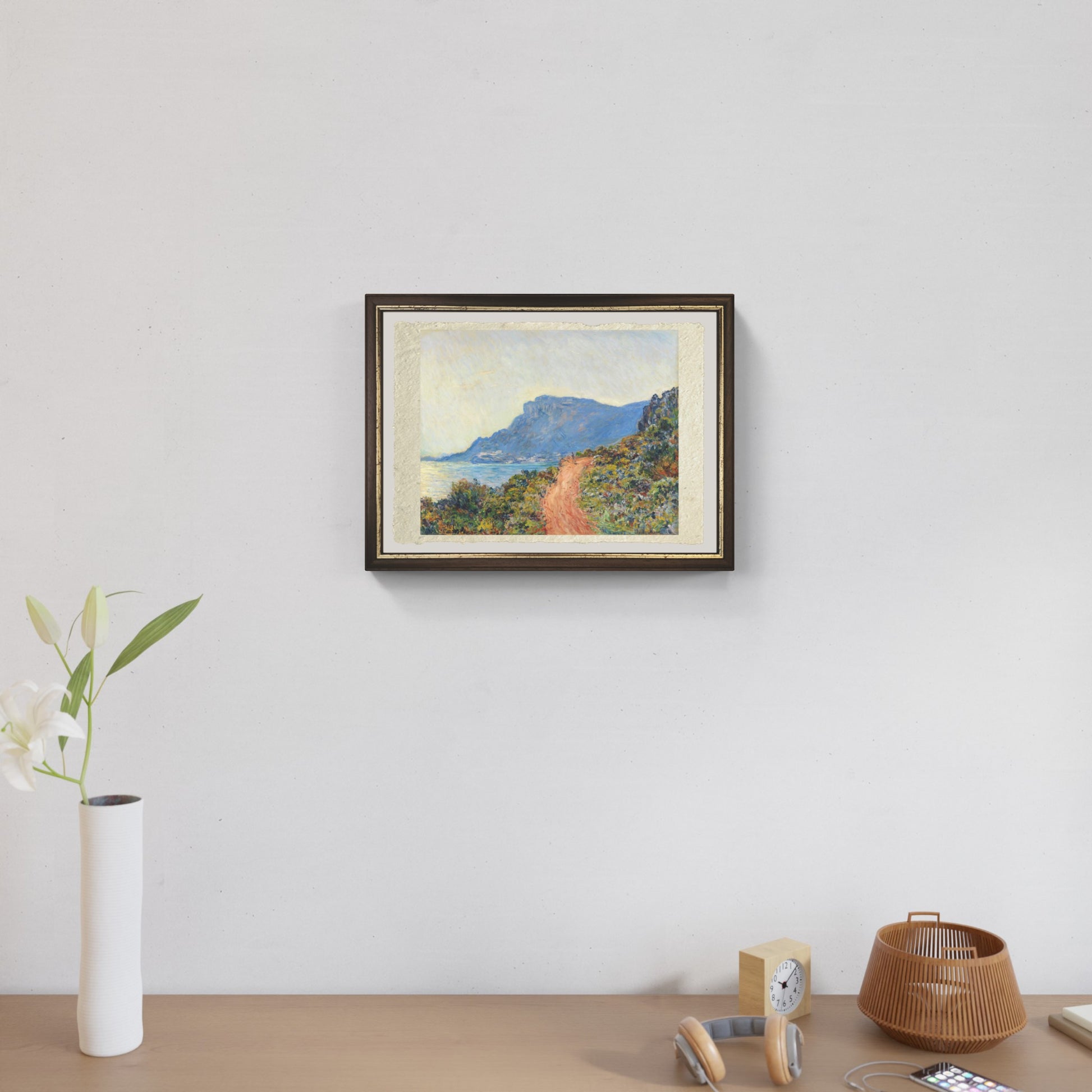 "Le Corniche vicino a Monaco" è un dipinto di Claude Monet realizzato nel 1884. L'opera cattura un paesaggio costiero della Riviera francese, mostrando una strada che si snoda su una collina con il mare Mediterraneo sullo sfondo. Monet era solito viaggiare alla ricerca di nuovi soggetti e atmosfere da dipingere, e la Riviera francese, con la sua luce intensa e i colori vivaci, lo affascinò.