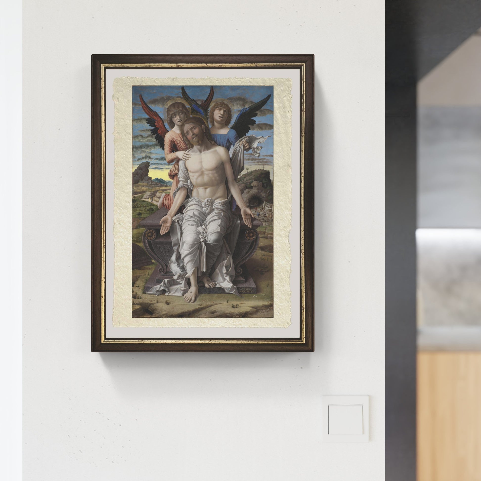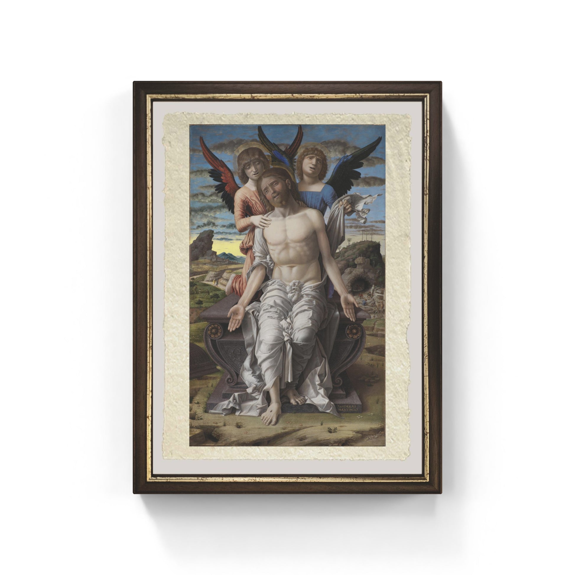 Cristo in pietà sorretto da due angeli di Andrea Mantegna su pregiata carta Amalfi