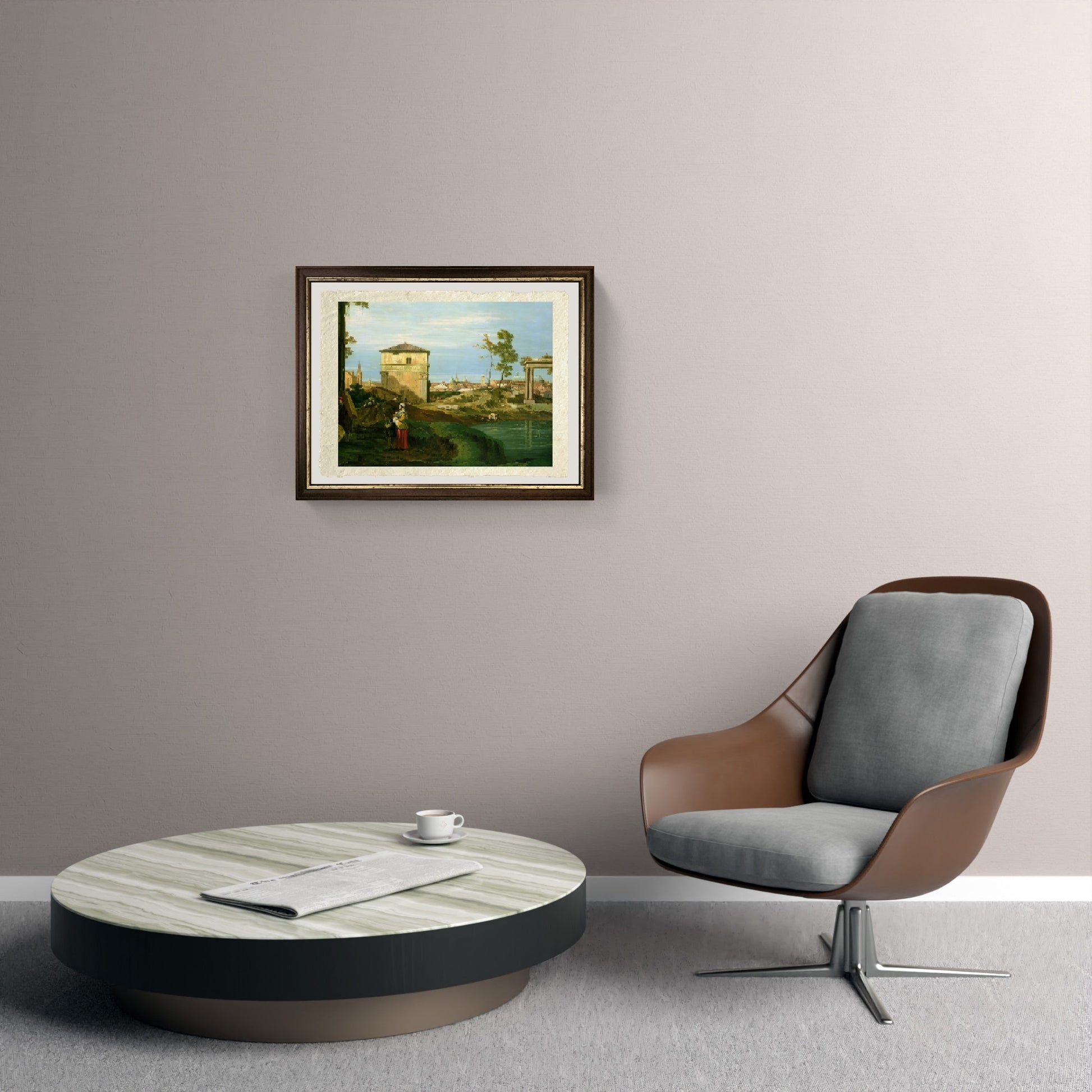 Rara settecentesca raffigurazione di un capriccio con primo piano nei pressi di porta Portello a Padova, realizzata da Giovanni Antonio Canal detto il Canaletto. In evidenza il fiume Piovego, con una donna che sta lavando i panni vicino alle rovine di un colonnato, mentre sul lato sinistro c'è altra scena di vita quotidiana. Più sullo sfondo si possono distinguere il Palazzo della Ragione, le cupole di Santa Giustina e Santo, e vari campanili dei quartieri di Padova. Il cielo è sereno e senza nuvole all'orizzonte. Il quadro, un olio su tela, non è datato.