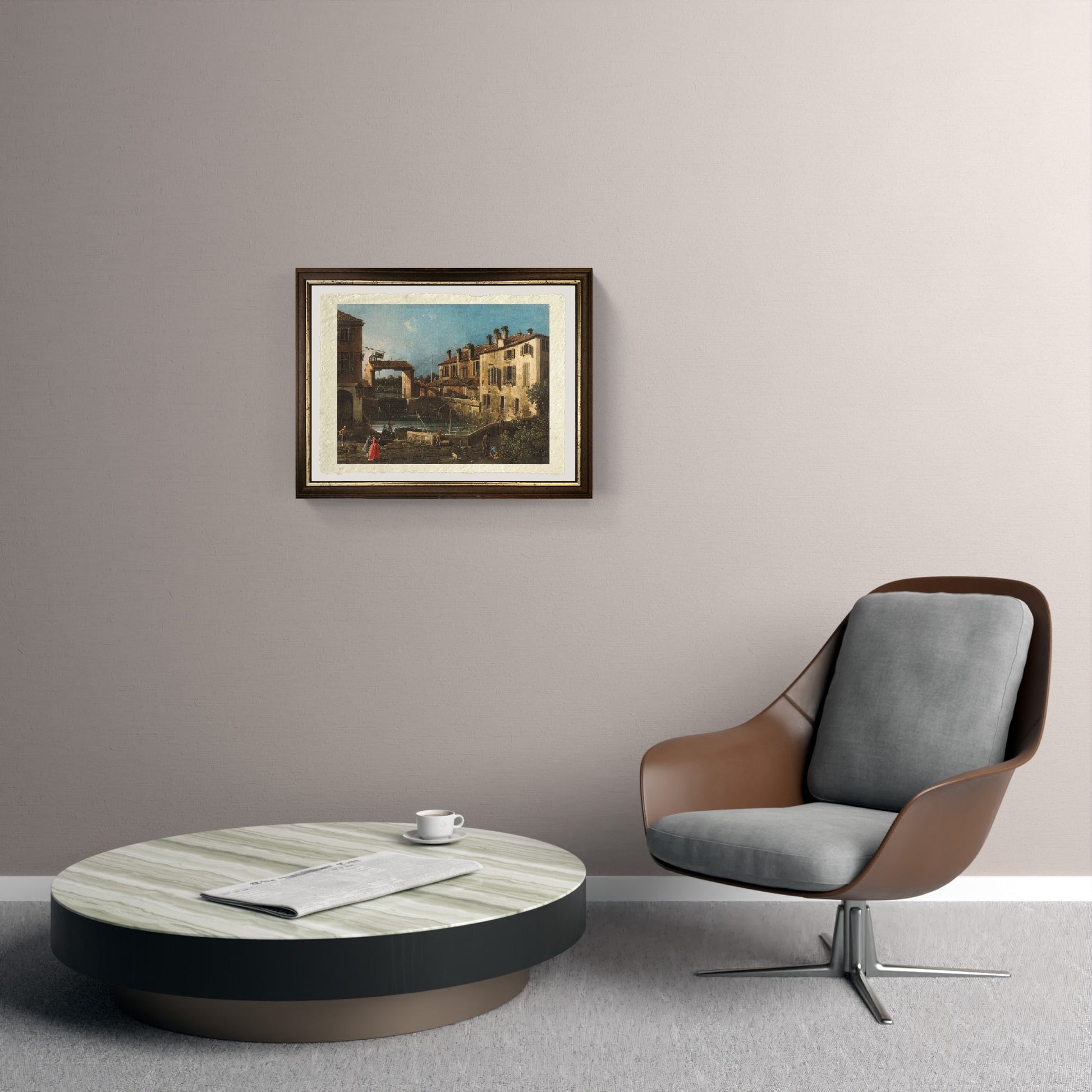 Originale e luminosa rappresentazione settecentesca della cittadina di Dolo sul veneziano, con il fiume Brenta, realizzata da Giovanni Antonio Canal detto Canaletto. In primo piano troviamo la riva del fiume, con scene di vita quotidiana, mentre sull'altro lato vi sono i palazzi borghesi di Dolo, non molto curati, illuminati dal sole del mattino. Il cielo è sereno, c'è qualche nuvola bianca, ma la giornata è buona.