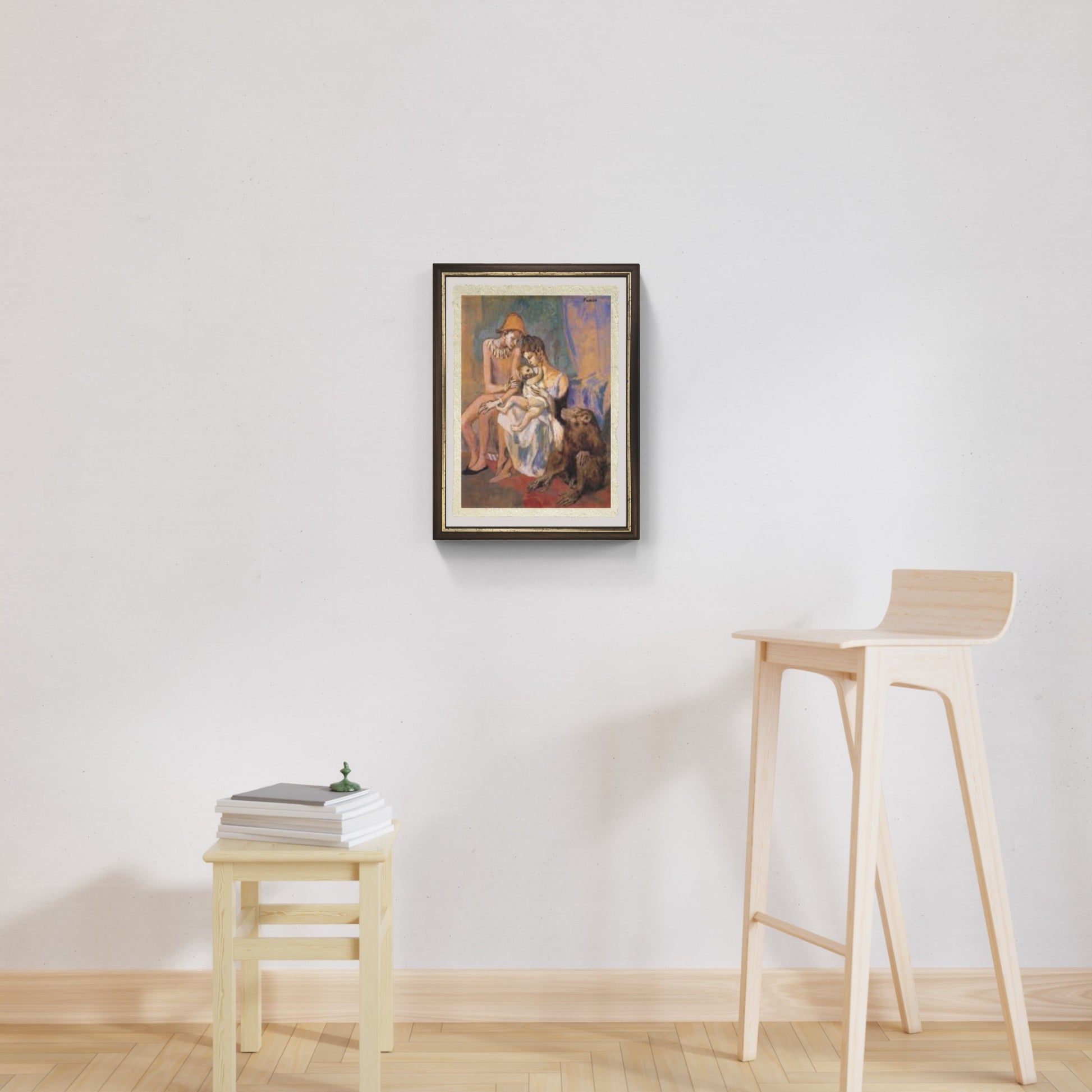 Le forme morbide e la palette rosata conferiscono un tono poetico e malinconico all’opera. Picasso esprime qui la sua empatia verso individui nomadi e spesso esclusi dalla società, rappresentandoli con delicatezza e dignità. L’opera è un esempio emblematico della sensibilità emotiva che caratterizza questo periodo dell’artista.