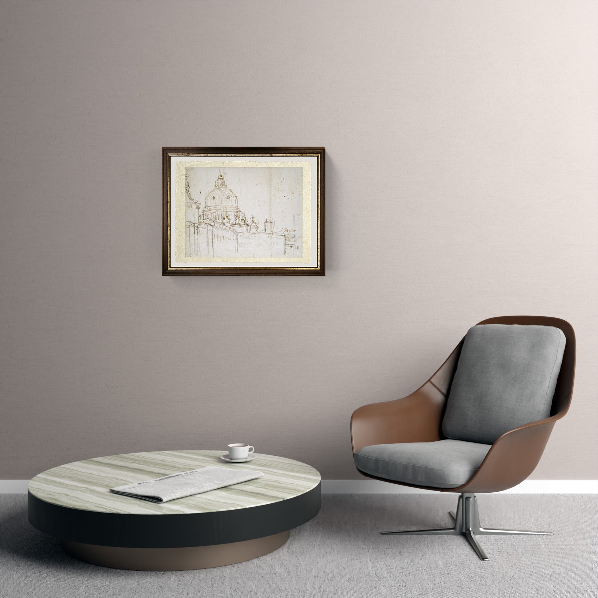 Originale e raro schizzo della veduta della Dogana e della chiesa Santa Maria della Salute, realizzata da Giovanni Antonio Canal detto Canaletto con penna e inchiostro marrone su gesso nero. In primo piano ecco punta della Dogana, con vicino la splendida chiesa di Santa Maria della Salute. Il cielo non è definito. L'incisione, non è datata. Esiste un'altra variante creata dal Canaletto di quest'opera.