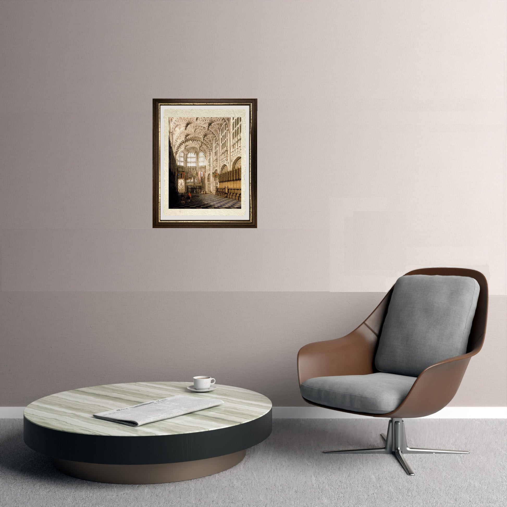 Originale, luminosa e rara veduta settecentesca della cappella di Enrico VII nell'Abbazia di Westminster, realizzata da Giovanni Antonio Canal detto il Canaletto. In evidenza le alte arcate della cappella, si levano alte rendendo l'uomo piccolo. Nella cappella ci sono due nobili che stanno discutendo, e più verso il fondo, altri turisti che stanno ammirando la chiesa. Da notare sul lato destro, costruito in legno il luogo dove siedono i monaci, quando c'è qualche funzione religiosa in atto. Il quadro, un olio su tela, è datato 1750.