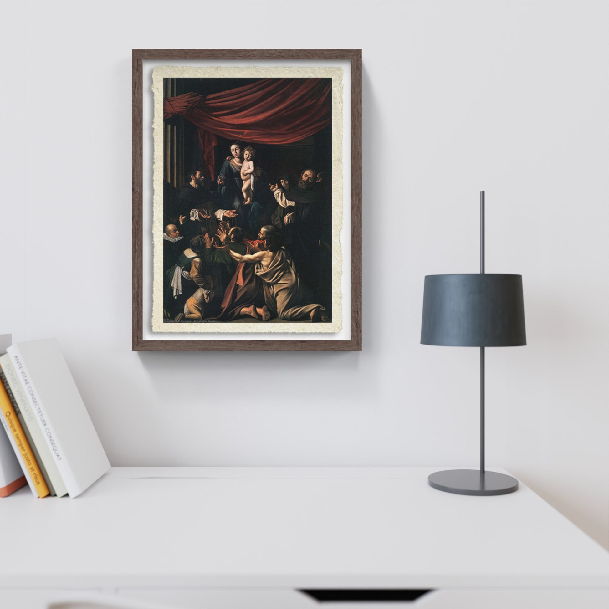 Materiale: opera stampata su carta pregiatissima con bordi sfrangiati Amalfi fatta a mano, cornice in legno di faggio fatta a mano