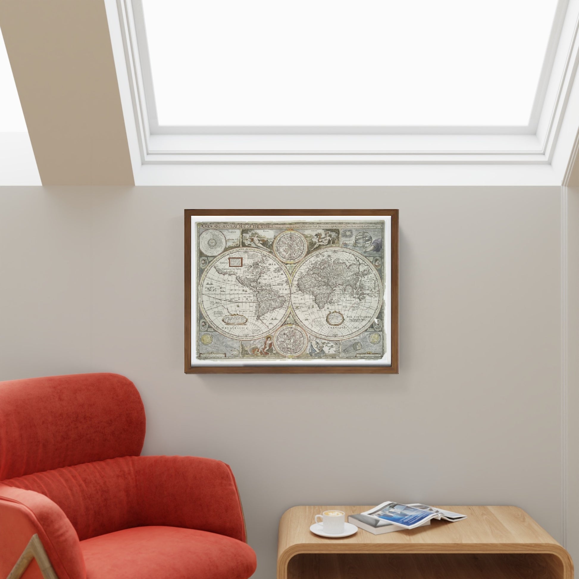 Mappa storica a doppio emisfero del mondo creata da John Speed nel 1676. Si tratta di una stampa colorata a mano.