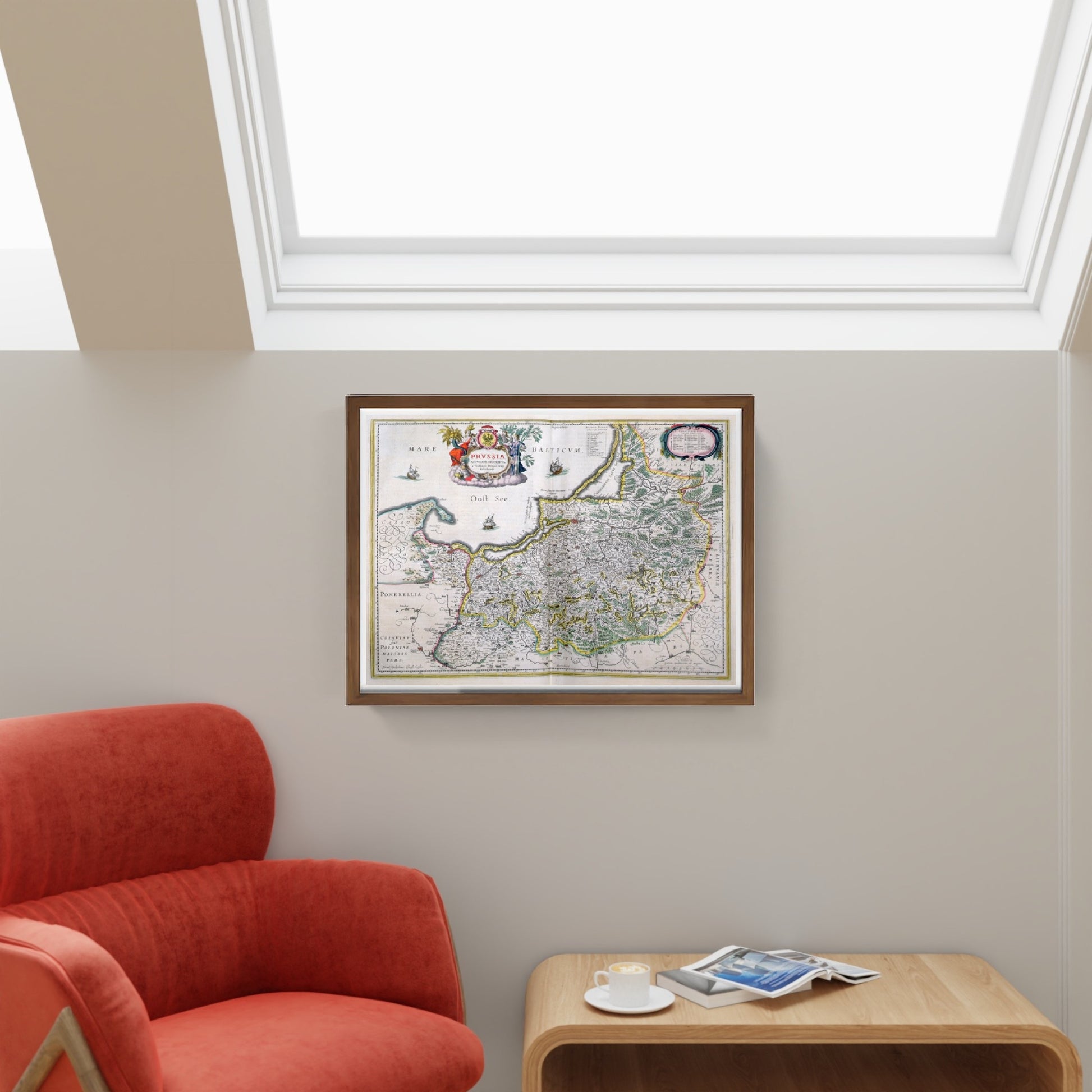 Mappa storica fisica della Prussia orientale della prima metà seicento creata da Joan Blaeu.