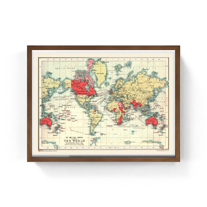 Mappa storica dell'Impero Britannico aggiornata al 1902. La mappa mostra tutti i continenti nei quali l'Impero Britannico aveva esteso i suoi confini, indicato in rosso gli stati sotto il controllo britannico.