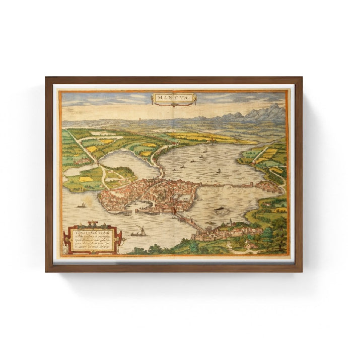 Mappa storica della città di Mantova vista dall'alto, di fine cinquecento, creata da Georg Braun. Fa parte della raccolta "Civitates Orbis Terrarum".