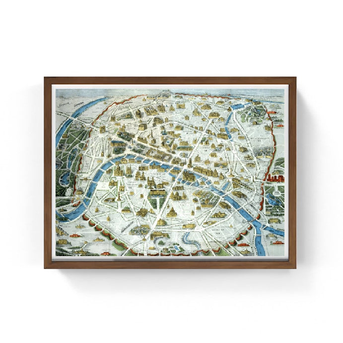La mappa evidenzia la Senna con il colore blu, e rappresenta in miniatura tutti i principali monumenti di Parigi del tempo. Si tratta di una mappa molto consultata dai turisti dell'epoca. Oltre a queste informazioni la mappa riporta anche la distribuzione dei quartieri di Parigi a fine ottocento.