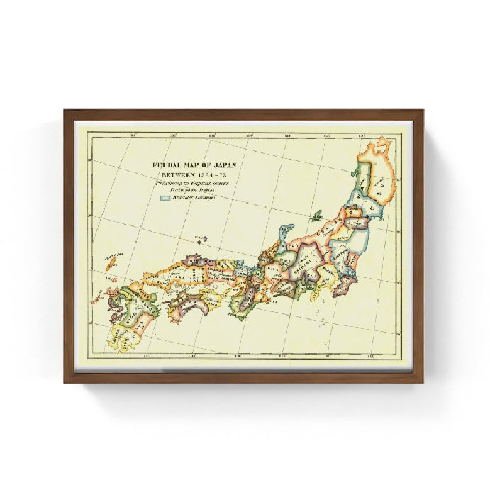 La mappa rappresenta il Giappone "politico" diviso in province, ognuna delle quali diversamente colorata. Le province sono indicate in inglese è sono quelle presenti nella seconda metà del cinquecento.