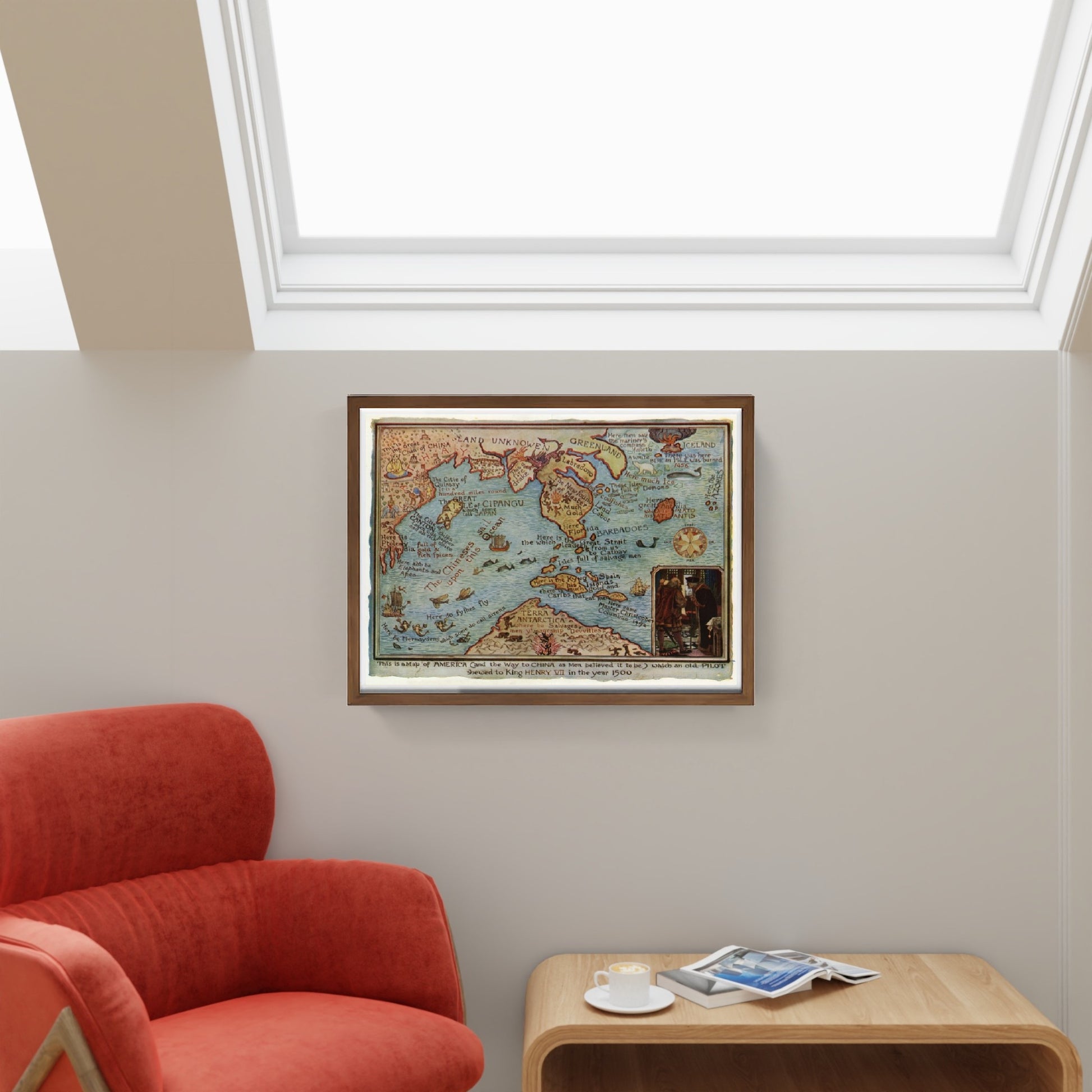 La mappa illustra una parte del "Cipangu" Cina, mentre per l'America c'è la Florida, e delle isole caraibiche. Per questa mappa Cina ed America costituiscono un unico continente. Si tratta quindi di un'America immaginaria, molto diversa dalla realtà, con i confini del continente americano che non sono ben definiti. La datazione della mappa è relativa la regno di Enrico VII°.