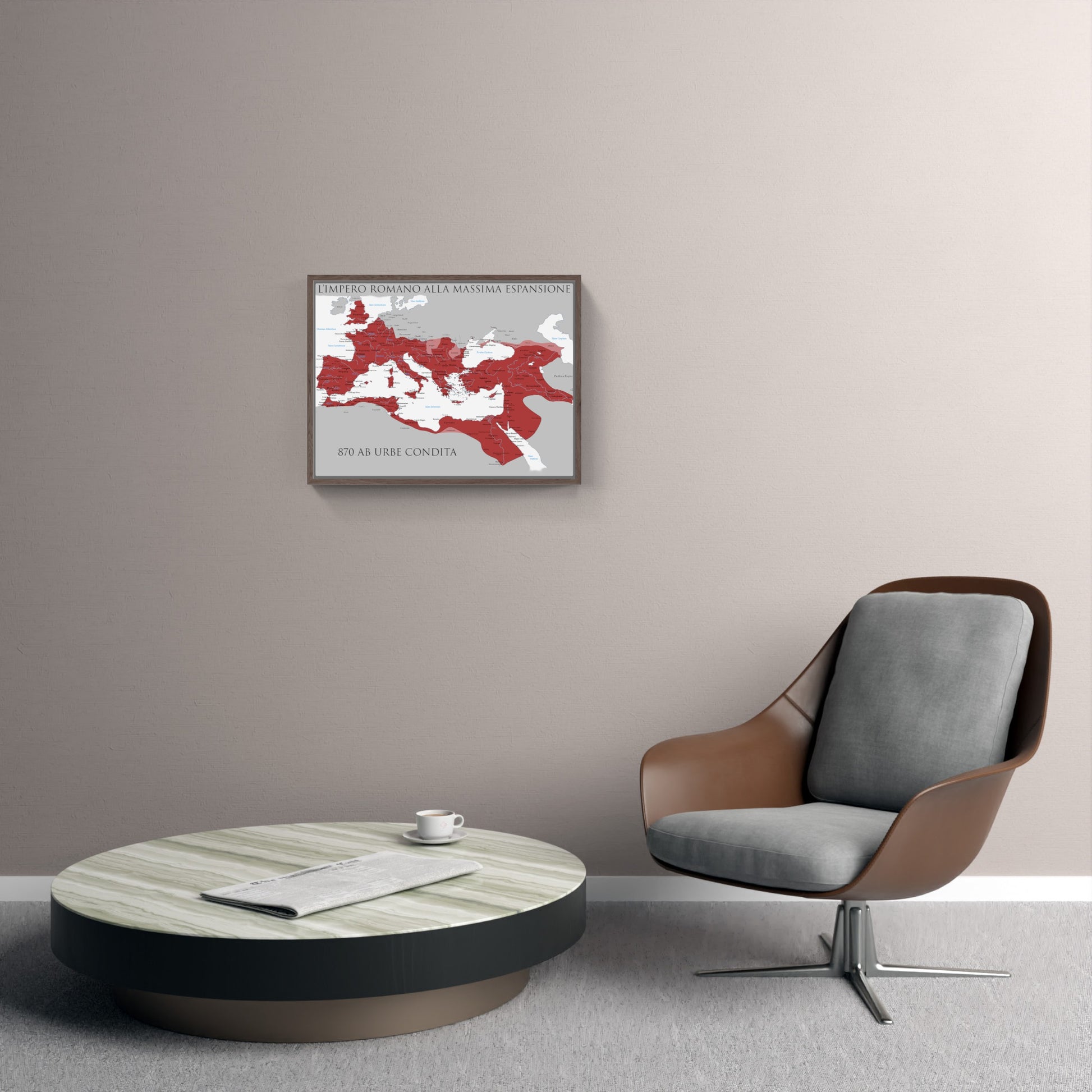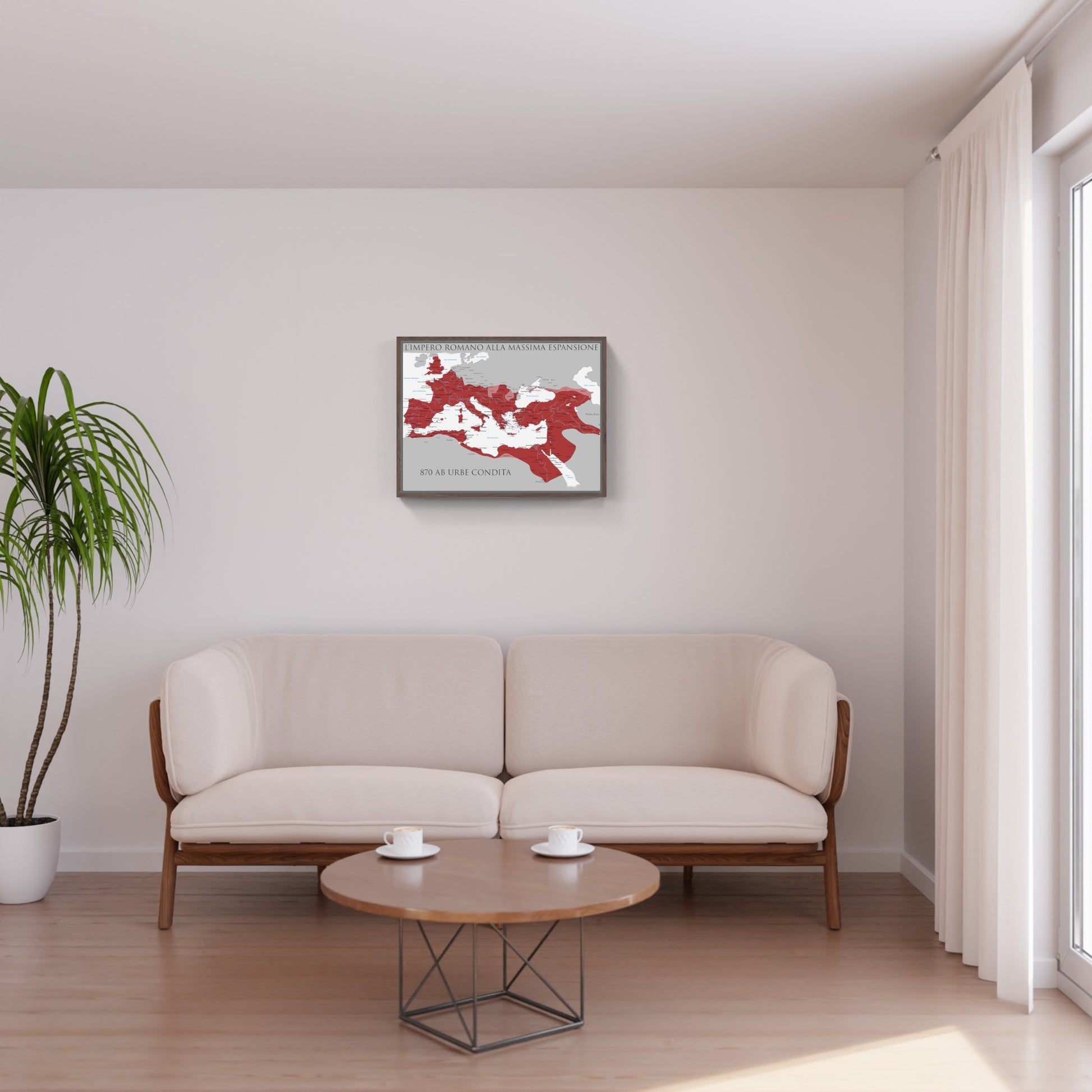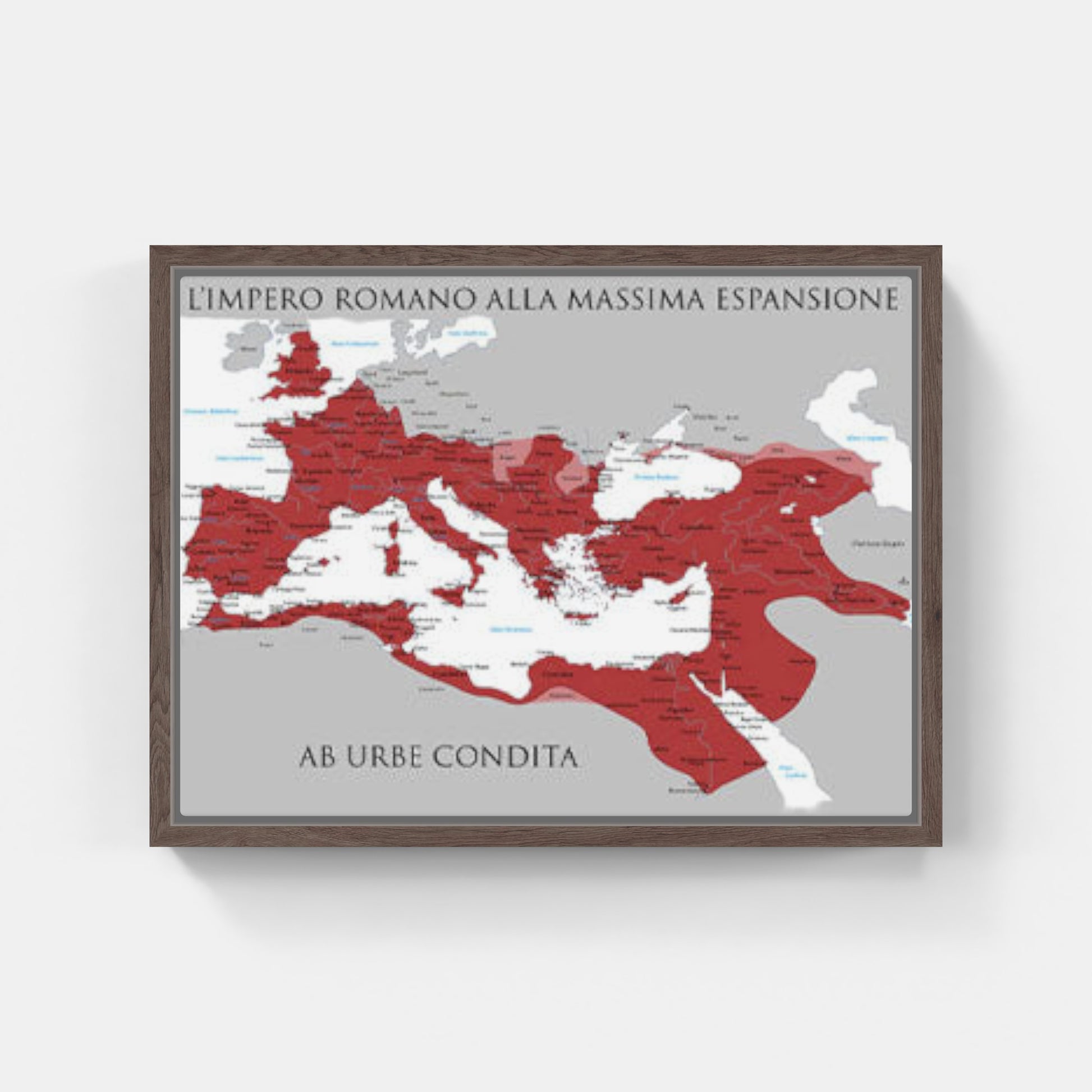 La potenza dell'impero romano per sempre riprodotta in una cartina unica. Arreda la tua casa, arricchisci il tuo ufficio o il tuo studio con la più efficace espressione del potere di Roma.