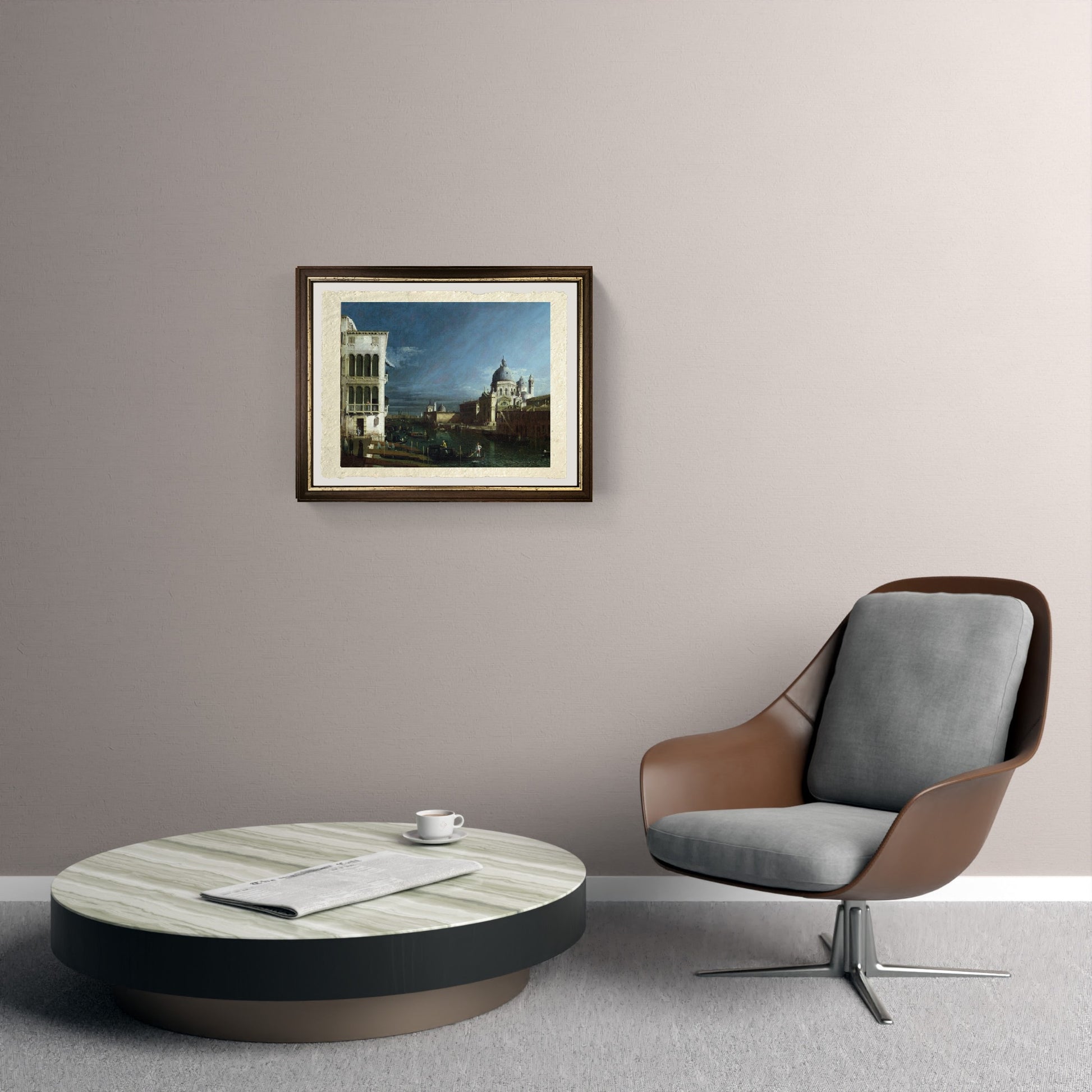 Meravigliosa e chiara veduta di Venezia con evidenza del Canal Grande, realizzata da Bernardo Bellotto. In primo piano, sul lato sinistro, troviamo un bel palazzo dipinto nei particolari, con delle gondole in attesa dei turisti. Dall'altro lato in prospettiva troviamo i palazzi, la chiesa della salute e Punta Dogana, rappresentati con maestria dal Bellotto. Sul canale c'è un via vai di imbarcazioni tra le quali alcune gondole. Nel cielo si sta formando qualche nuvola.