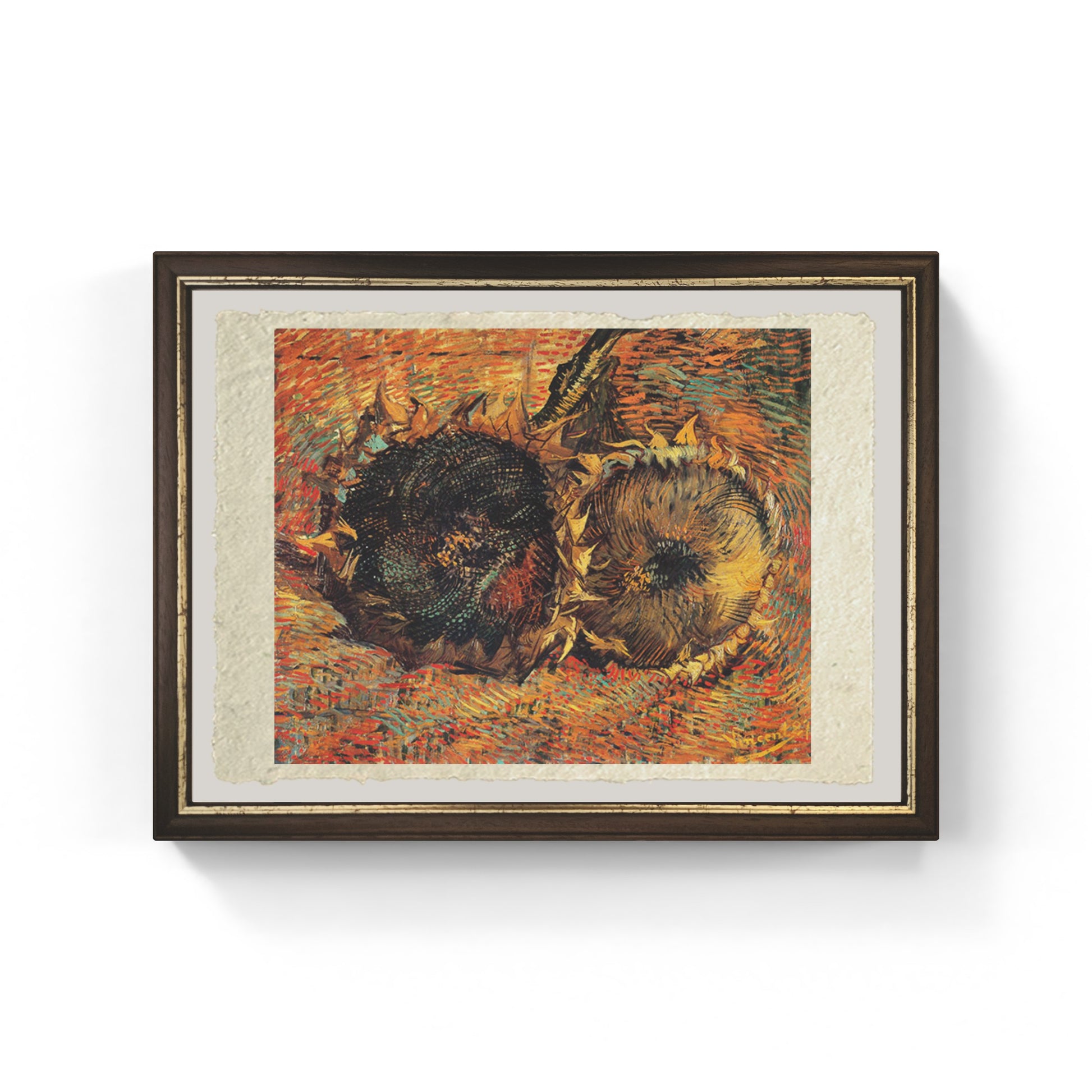 Natura morta con due girasoli di Van Gogh su pregiata carta Amalfi