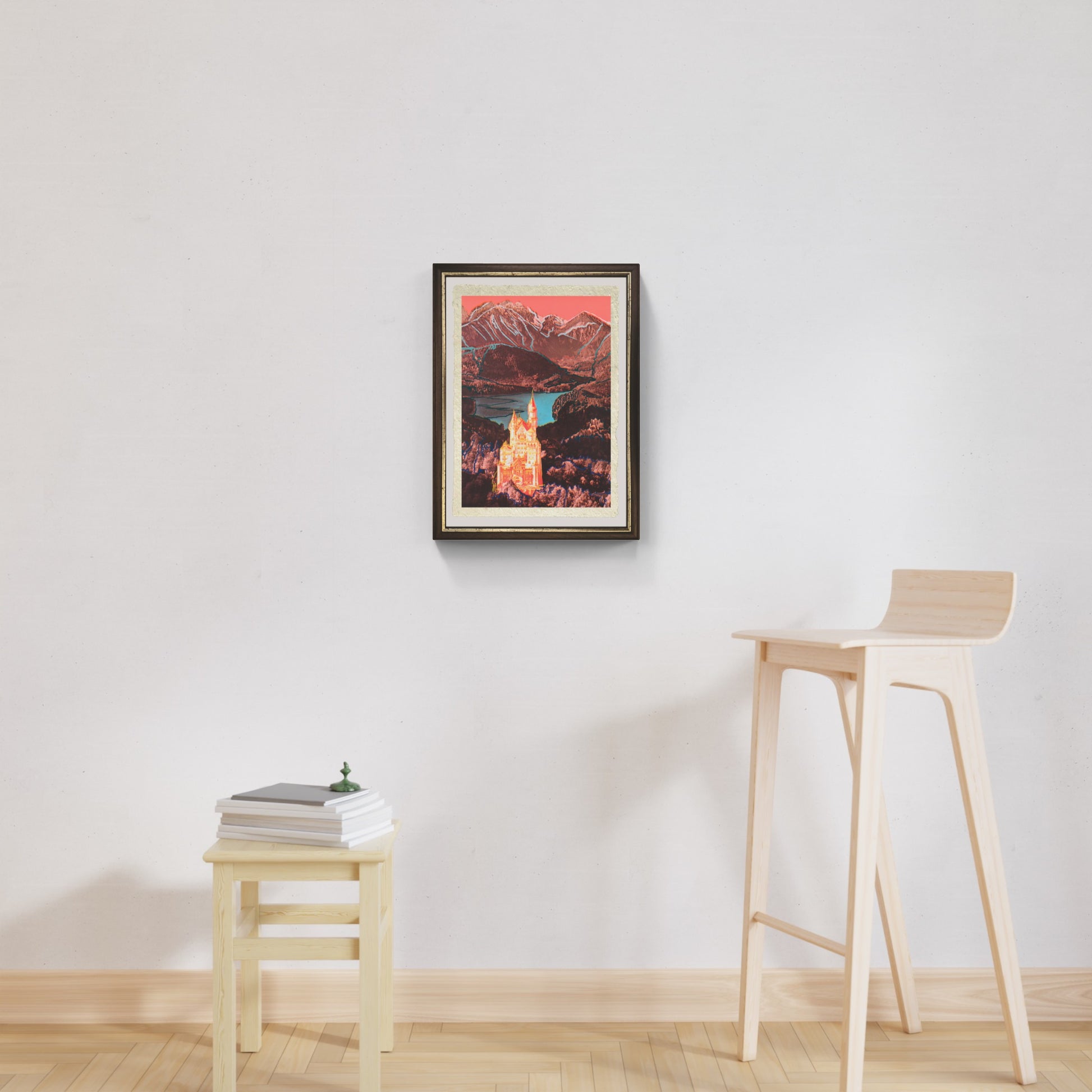 La struttura, solitamente percepita come monumento da cartolina, viene reinterpretata come immagine sospesa tra sogno e spettacolo, spogliata della sua solennità storica. L’intervento cromatico crea un contrasto tra memoria collettiva e percezione moderna, rendendo il castello un’icona visiva più che un luogo reale. Neuschwanstein diventa così una riflessione sull’immaginario romantico e sul modo in cui la cultura pop trasforma i simboli in immagini universali.
