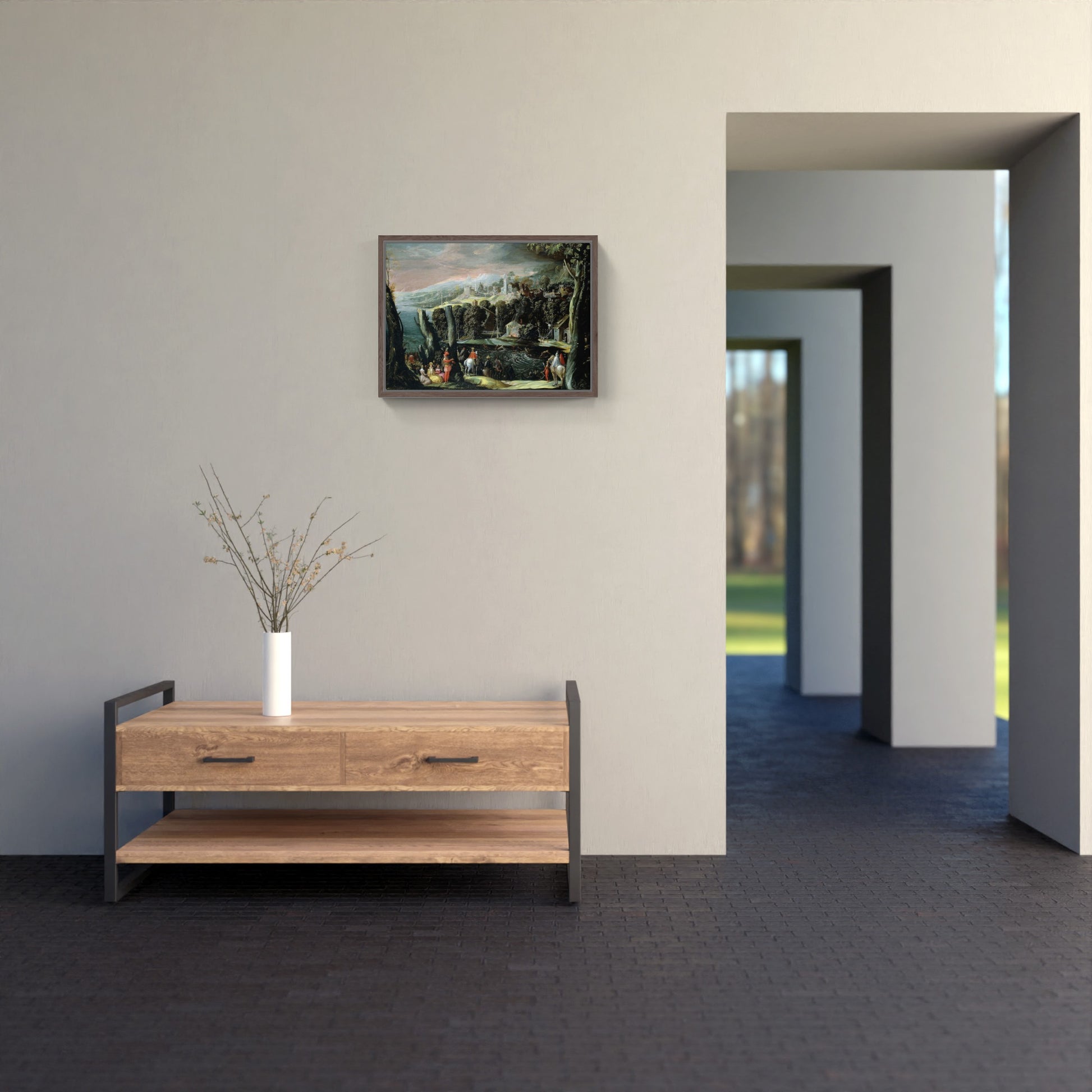 Il dipinto in questione, caratterizzato da un'atmosfera fiabesca e una vivida scena di caccia al cervo, è probabilmente entrato nella Collezione Borghese nel 1608. Questo ingresso avvenne grazie all'invio di opere da Ferrara, curato da Enzo Bentivoglio su incarico del cardinale Scipione Borghese, a seguito della spoliazione dei camerini d'alabastro del castello Estense.