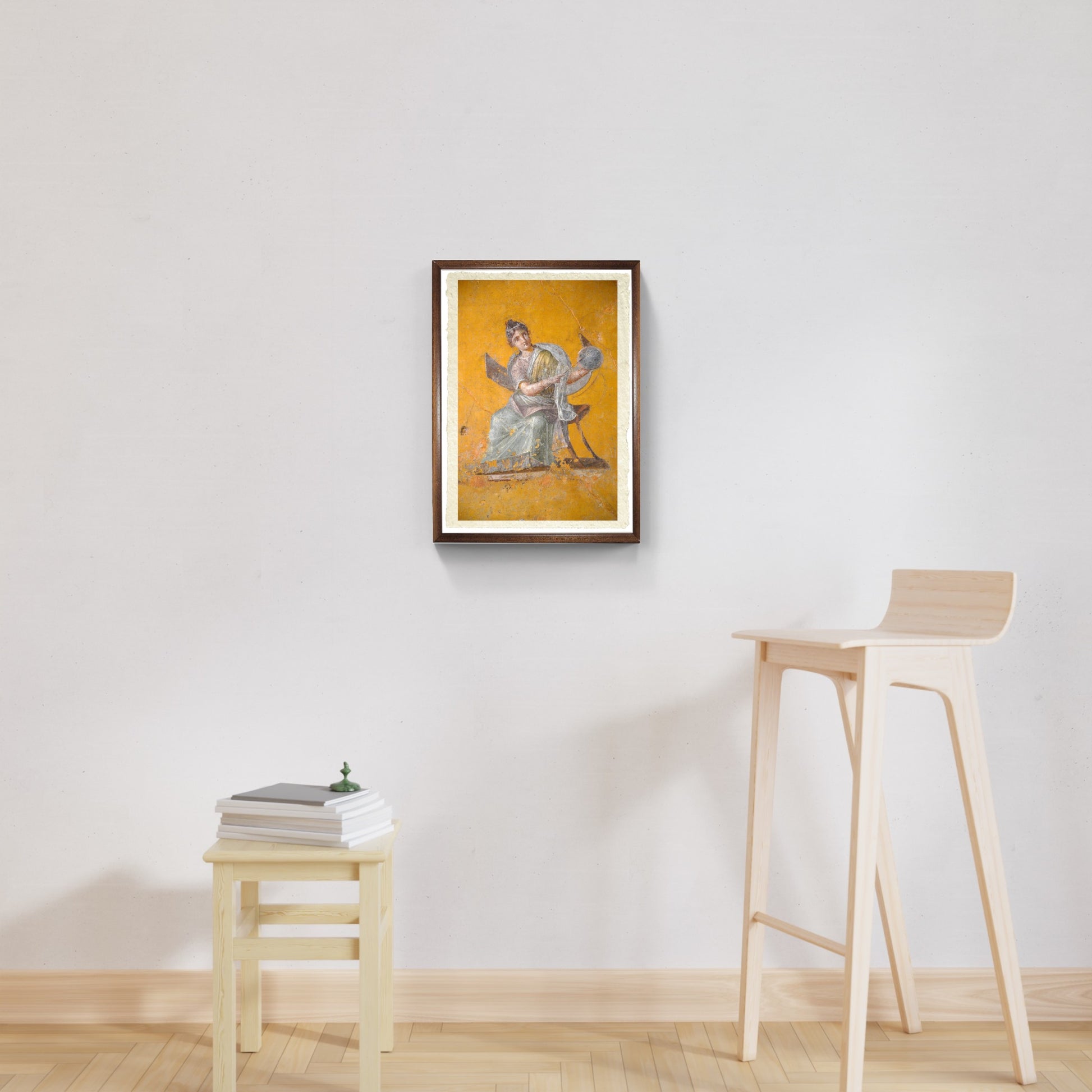 Nell'affresco, Urania è rappresentata in piedi su una colonna decorativa, indossando una veste fluente. Tiene in mano una sfera celeste, simbolo della sua associazione con l'astronomia e le stelle. La raffigurazione evidenzia l'attenzione dei pittori pompeiani per i dettagli e la capacità di trasmettere la maestosità delle figure divine.