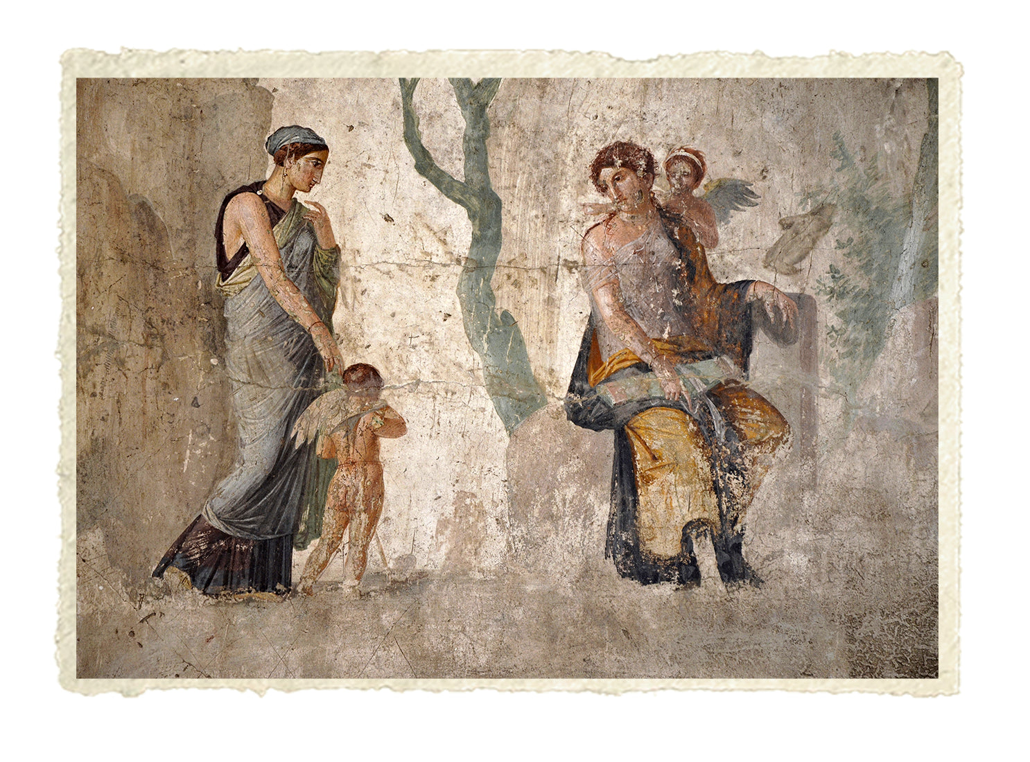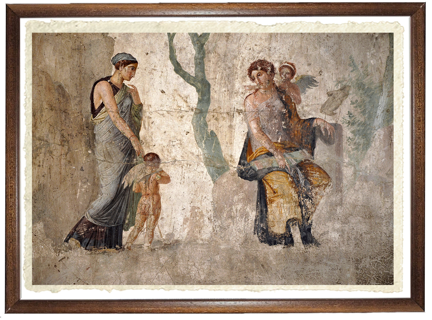 Pompei. Affresco di Eros punito in presenza di Afrodite