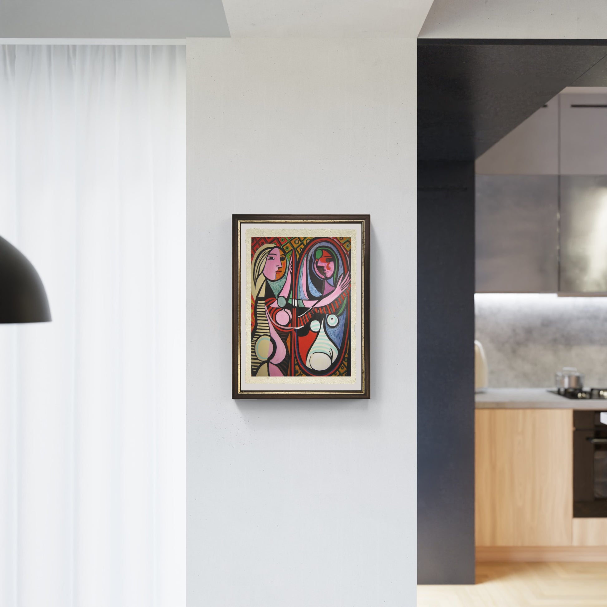 Ragazza di fronte allo specchio di Pablo Picasso su pregiata carta Amalfi