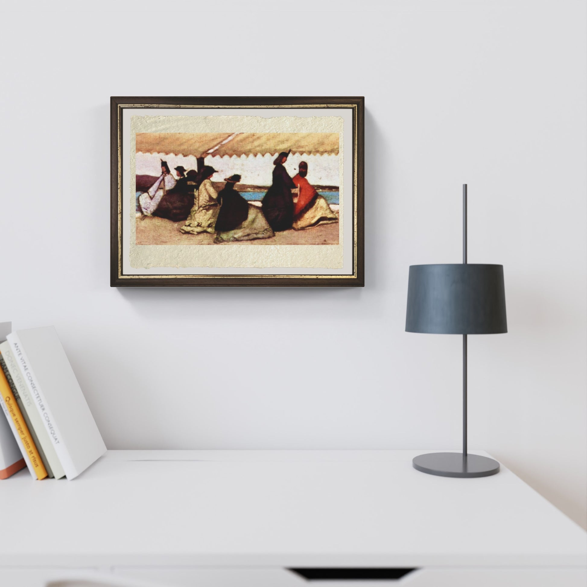 Il quadro ritrae un gruppo di signore borghesi sedute sotto un tendone ocra in uno stabilimento balneare sul lungomare di Livorno (i Bagni Palmieri), intente a fare i "bagni d'aria di mare", una consuetudine dell'epoca. Le donne sono completamente vestite con lunghe gonne, mantelle e cappellini.