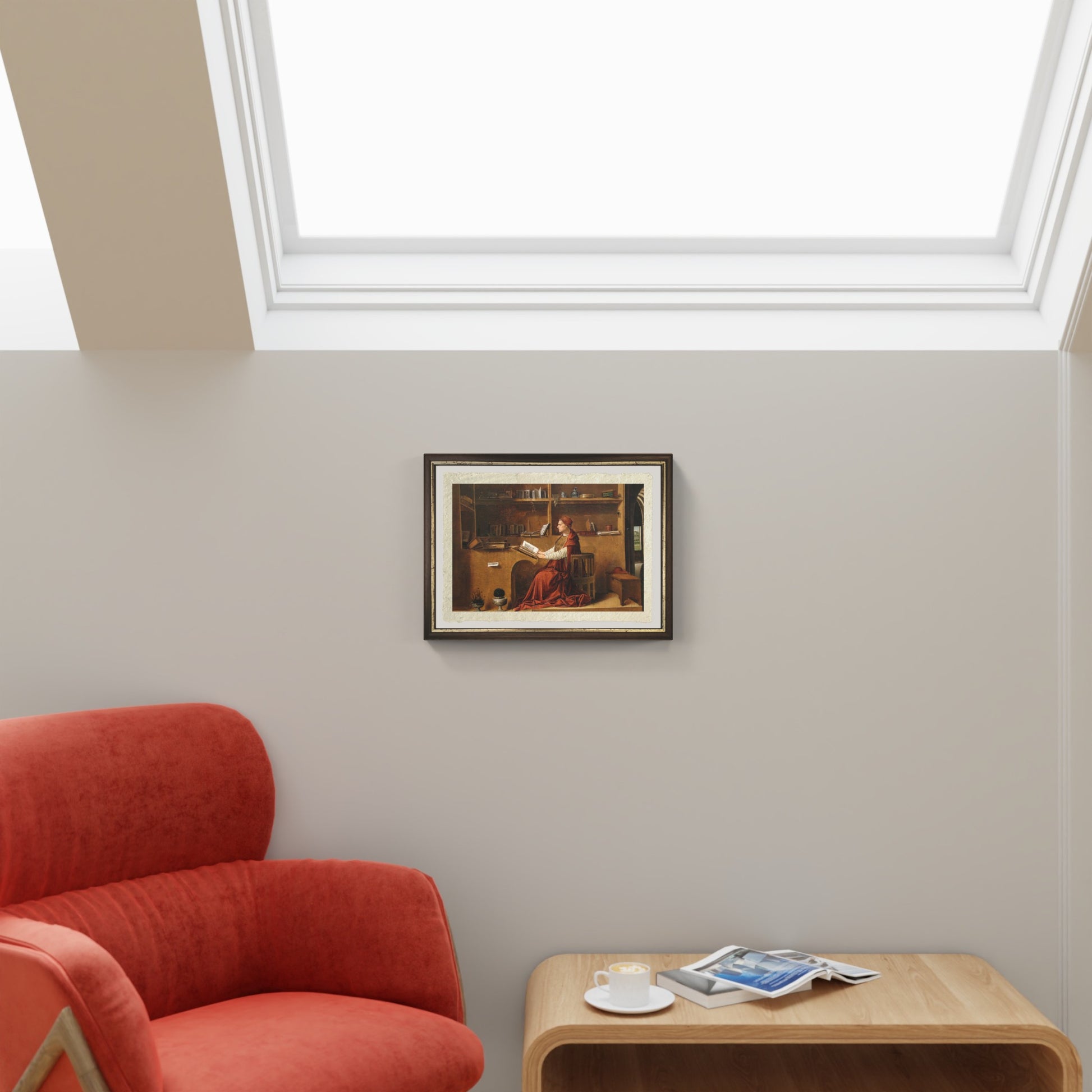 Il santo è circondato da dettagli realistici: il libro, il teschio e gli strumenti di scrittura, simboli di conoscenza, meditazione e vanitas. La tavola rivela l’influenza fiamminga nell’uso dell’olio e nella resa minuziosa dei particolari, combinata con la solidità volumetrica e la misura tipiche del Rinascimento italiano. L’opera trasmette calma, solitudine e rigore morale, espressione della spiritualità quattrocentesca.