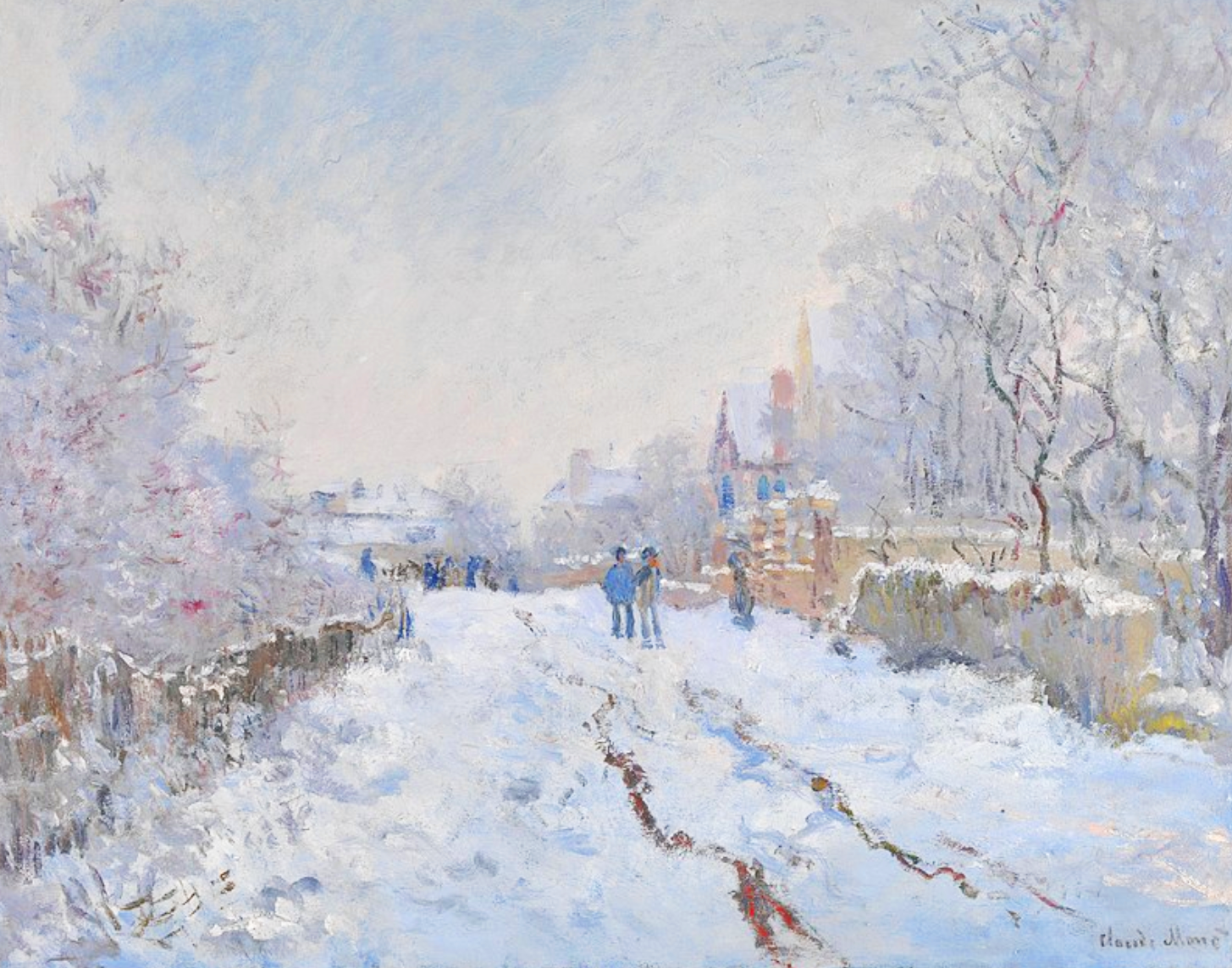 Scena di neve ad Argenteil di Claude Monet su pregiata carta Amalfi