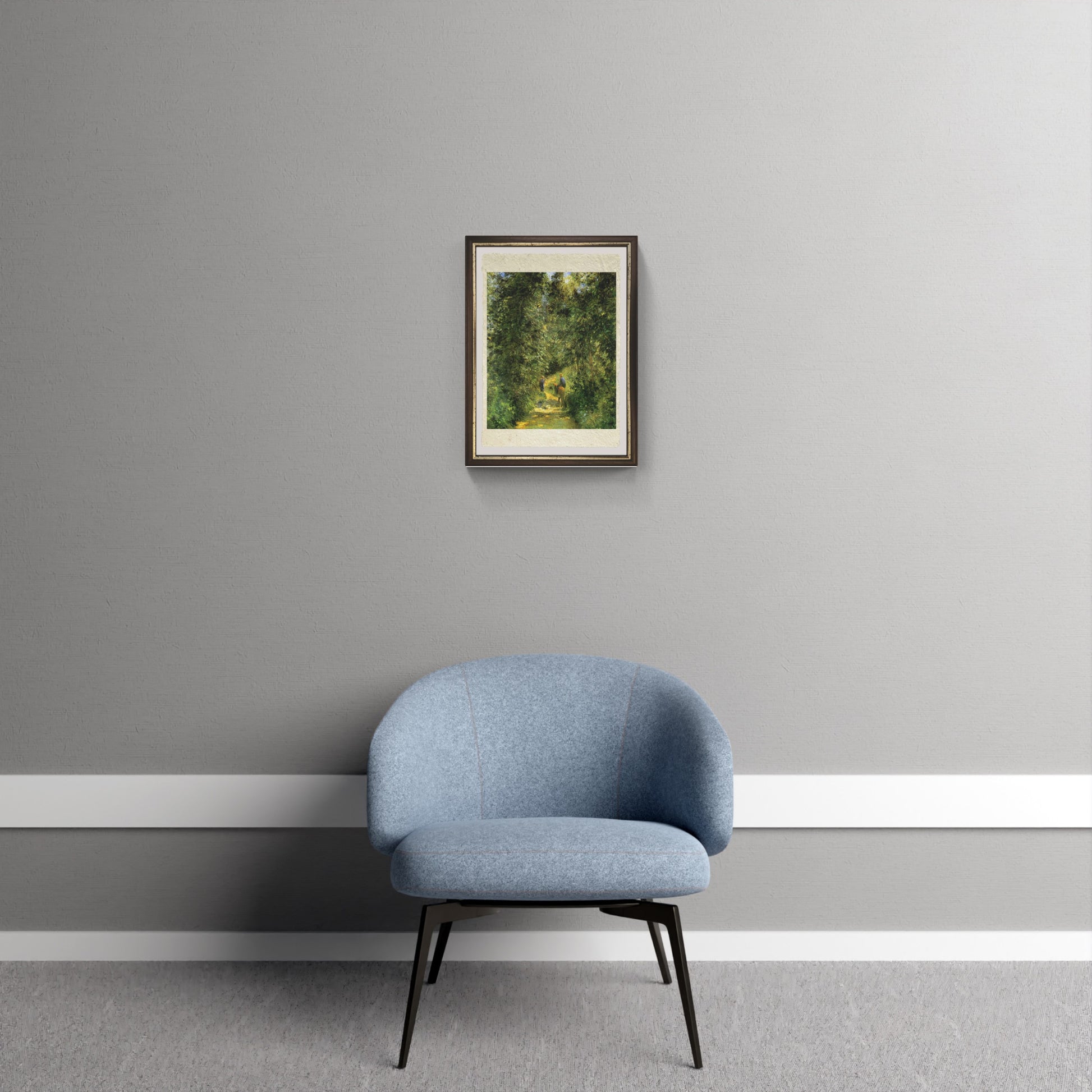 Questa composizione riflette l’interesse di Pissarro per la natura e per la rappresentazione del paesaggio en plein air, in cui la luce e il colore sono protagonisti. "Sentiero nel bosco" è un invito a riscoprire la calma e l’armonia del mondo naturale attraverso lo sguardo sensibile e attento dell’artista.