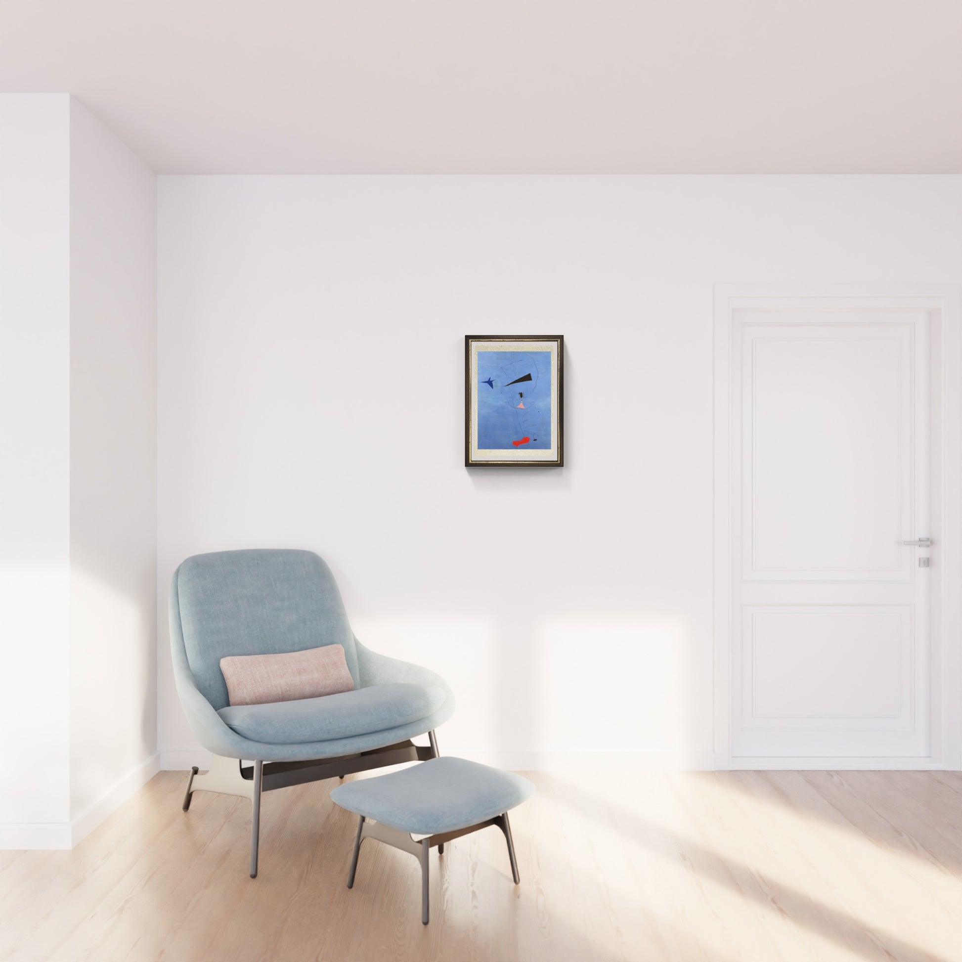 Linee sottili e segni apparentemente infantili dialogano con campiture cromatiche pure, creando un equilibrio tra rigore e spontaneità. Come in molte opere dell’artista, la semplicità formale nasconde una forte intensità emotiva: la stella diventa simbolo di speranza, orientamento e desiderio di evasione dalla realtà terrena. Stella blu rappresenta così una sintesi perfetta tra astrazione e poesia, confermando Miró come uno dei protagonisti assoluti dell’arte del Novecento.