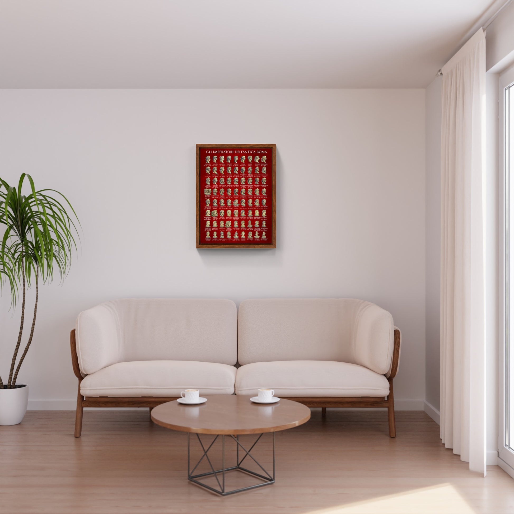 Un attento e precisissimo lavoro di estrazione dell’effigie di ogni imperatore romano che viene qui riproposto in una esclusiva patina dorata a celebrare la millenaria gloria di Roma. A partire da monete in eccellente stato di conservazione, coniate quando ogni imperatore era ancora in vita, i nostri esperti hanno estratto i volti dei regnanti e li hanno riproposti, dorati, in un'opera esclusiva ed irripetibile per tutti gli appassionati.