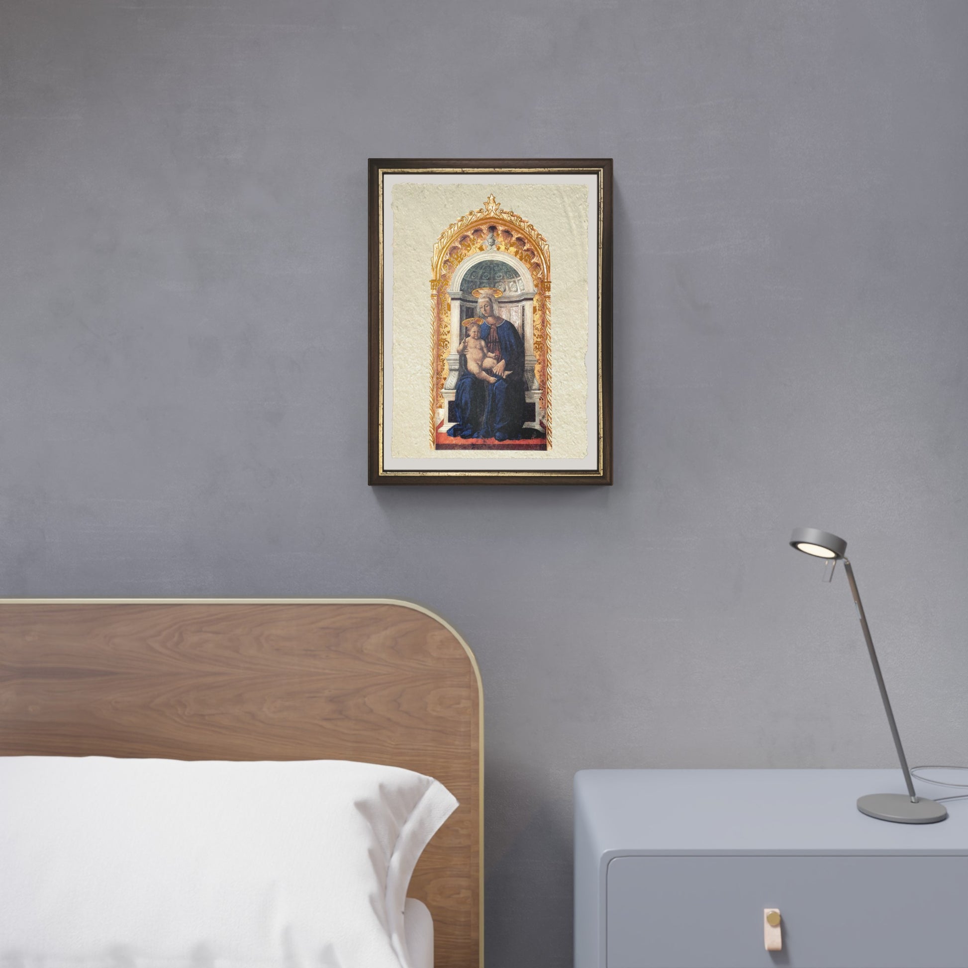 La Vergine e il Bambino con le aureole lucidate a specchio di Piero della Francesca su pregiata carta Amalfi